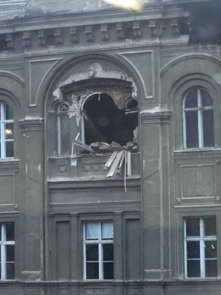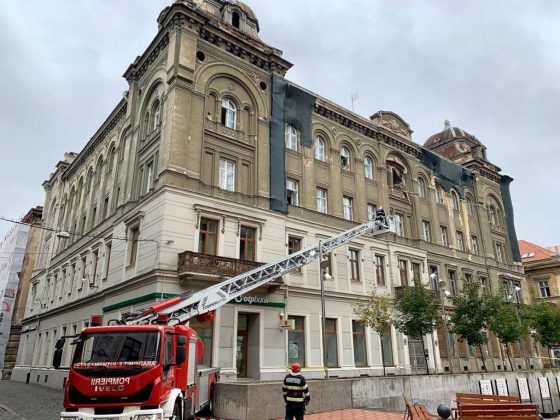 Cu ajutorul unui utilaj de muncă la înălțime, pompierii au eliminat bucățile ce mai prezentau risc de cădere. Potrriivt pompierilor, tavanul încăperii s-a prăbușit și a ieșit pprin geam și pereți în exterior. Zona a fost împrejmuită cu bandă de protecție și nu se mai poate trece pe acel trotuar.