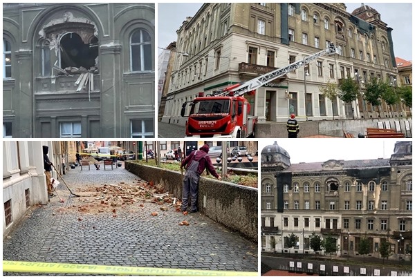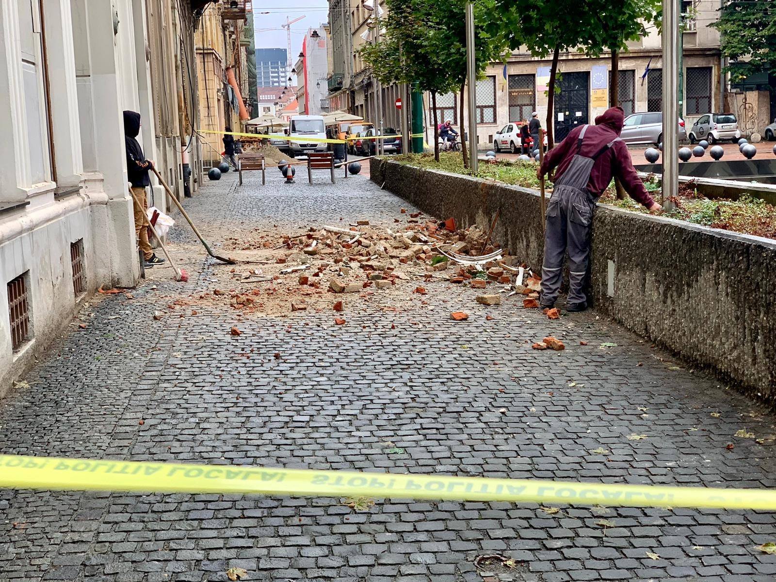Mai multe bucăți din tencuiala, peretele și un geam al unei clădiri din Piața Sfântul Gheorghe din Timișoara s-au prăbușit. Acestea au căzut pe trotuar, dar nu nimeni nu a fost rănit.