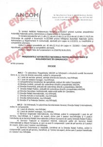 – ANCOM: Reorganizarea internă a ANCOM vine ca urmare a unui proces intern de evaluare a activității derulate până în prezent și este menită să eficientizeze structura Autorității, astfel încât aceasta să fie capabilă să răspundă mai rapid evoluțiilor și noilor realități din piața reglementată și să livreze în continuare servicii publice de calitate, așa cum a obișnuit. Procesul de evaluare derulat de conducerea ANCOM nu implică disponibilizări de personal, ci redefinirea unor procese și un nou sistem de coordonare a activității.