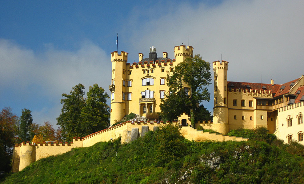 Castelul Hohenschwangau este o călătorie prin timpuri medievale, într-un decor ce îţi taie respiraţia: de aici, Ludovic al II-lea privea pe geam, spre celălalt munte, unde se construia castelul Neuschwainstein, sub stricta sa supraveghere.