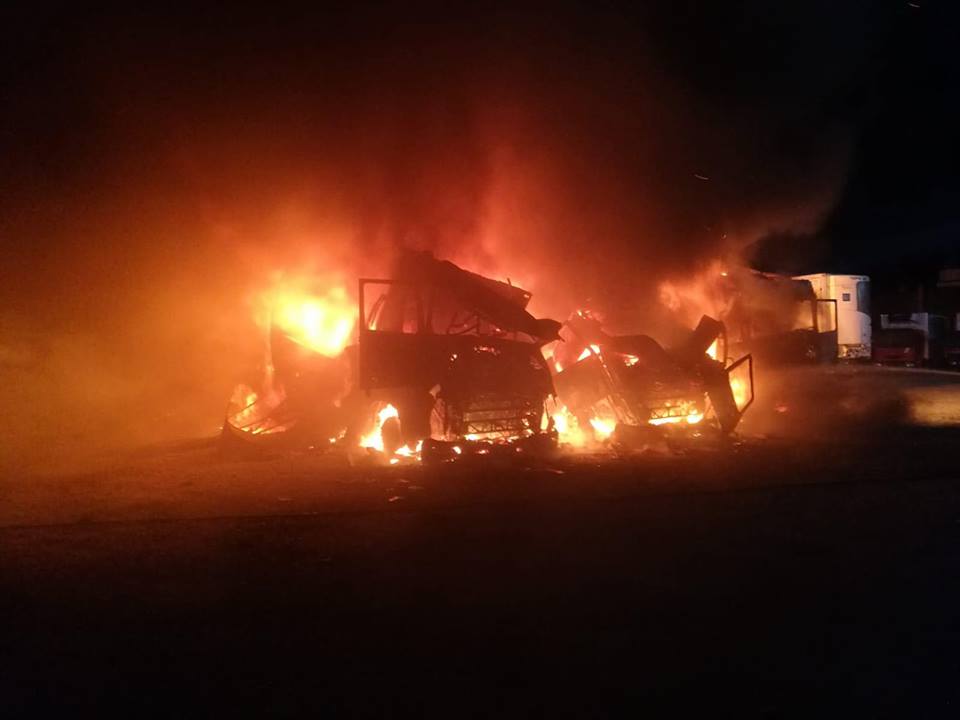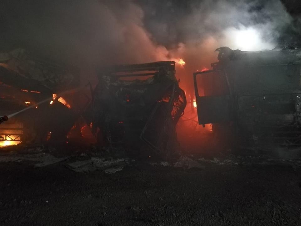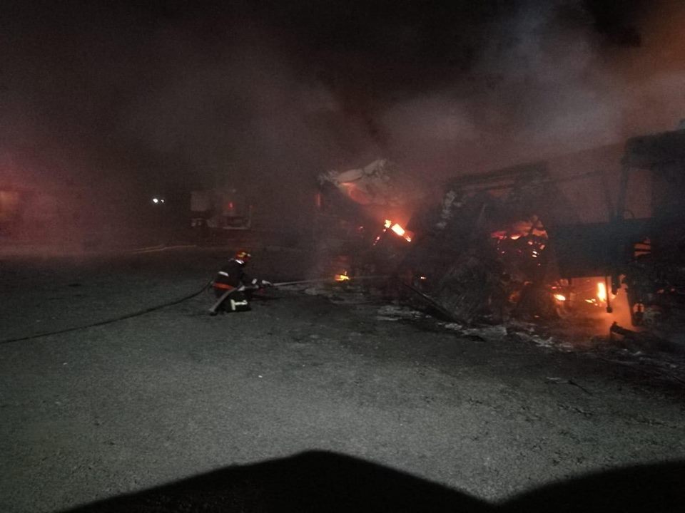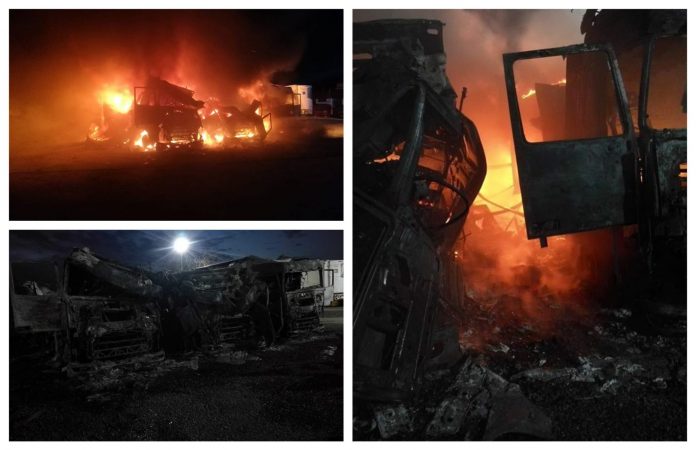 Camioanele au luat foc în localitatea Cicir. La momentul sosirii echipelor de intervenție, ardeau generalizat, violent, 3 autovehicule, toate parcate unul lângă celalalt la mică distanță și cu posibilitate de propagare la alte camioane.