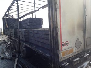 Traficul se desfășoară îngreunat, luni după masă, pe Autostrada A1, în județul Arad, în apropiere de ieșirea spre localitatea Zădăreni. Un camion ce transporta traverse de lemn a luat foc.