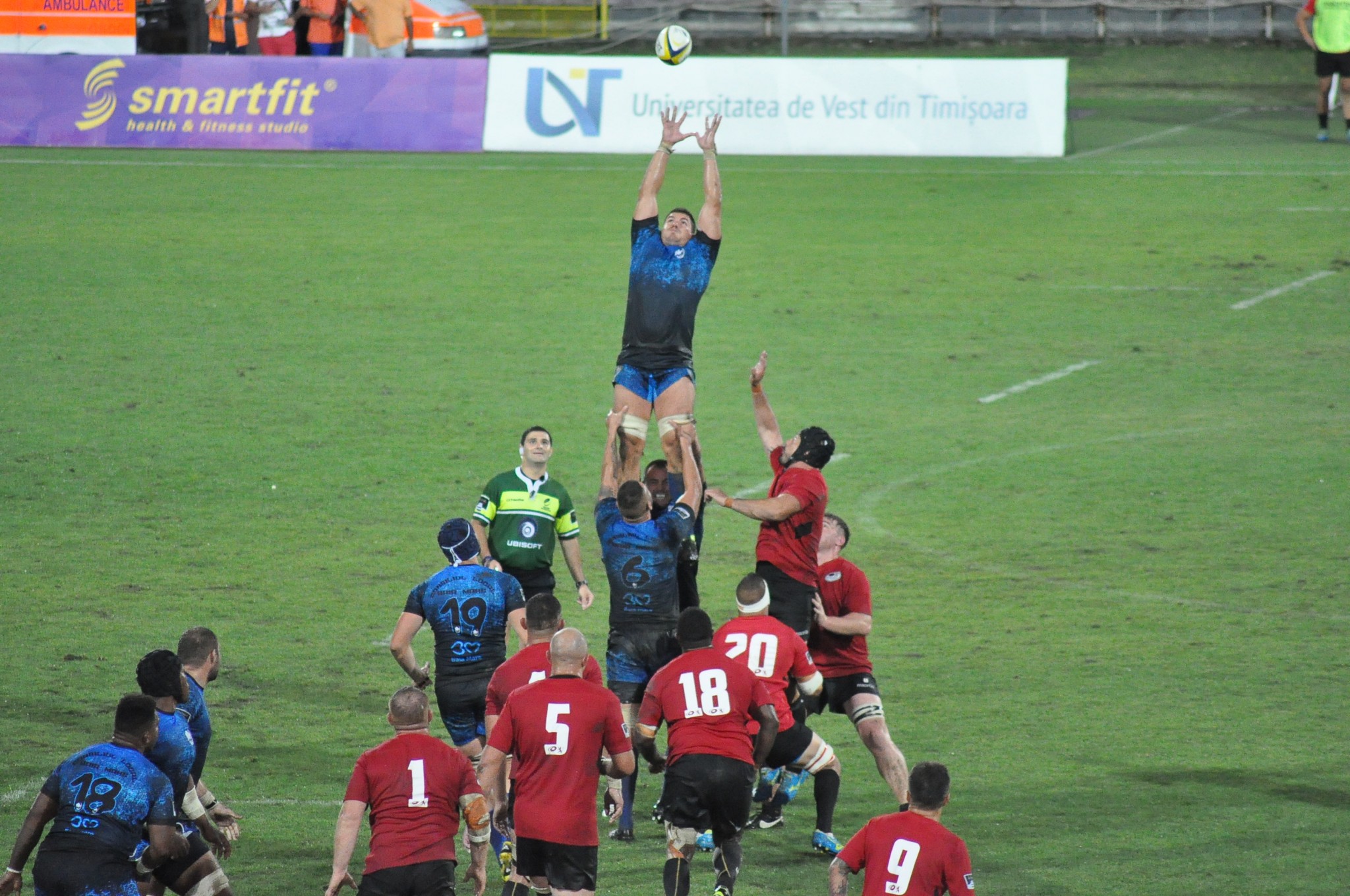 Campioana a fost echipa care a marcat prima. Debutantul Will Helu a semnat primul său eseu în Banat și primul aal meciului. Era minutul 26 și gazdele conduceau cu 5-0 pentru că transformarea a fost ratată de Conache. Patru minute mai târziu scenariul se repetă: același Helu pleacă într-o cursă personală și finalizează cu o nouă încercare, de data aceasta transformată de Conache pentru 12-0.