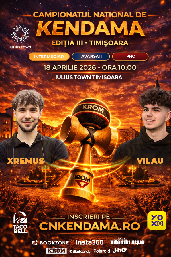 Sâmbătă, 18 aprilie 2026, de la ora 10.00, în Atriumul Iulius Town va avea loc Campionatul Național de Kendama, ajuns la ediția a treia. La eveniment vor fi prezenți cunoscuții jucători de kendama Xremus și Vilău. Competiția se desfășoară pe trei niveluri de dificultate, adresându-se tuturor celor care vor să intre în joc, de la cei care stăpânesc deja bazele, până la jucători experimentați și profesioniști. Participarea este gratuită, iar pasionații se pot înscrie la categoria potrivită și pot consulta lista de trick-uri necesare pe site-ul oficial al campionatului.