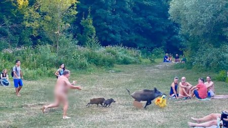 Un nudist din Berlin a fugărit dezbrăcat un mistreț care a ieșit din pădure și i-a luat punga de plastic în care își ținea laptopul, informează BBC.