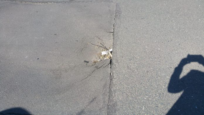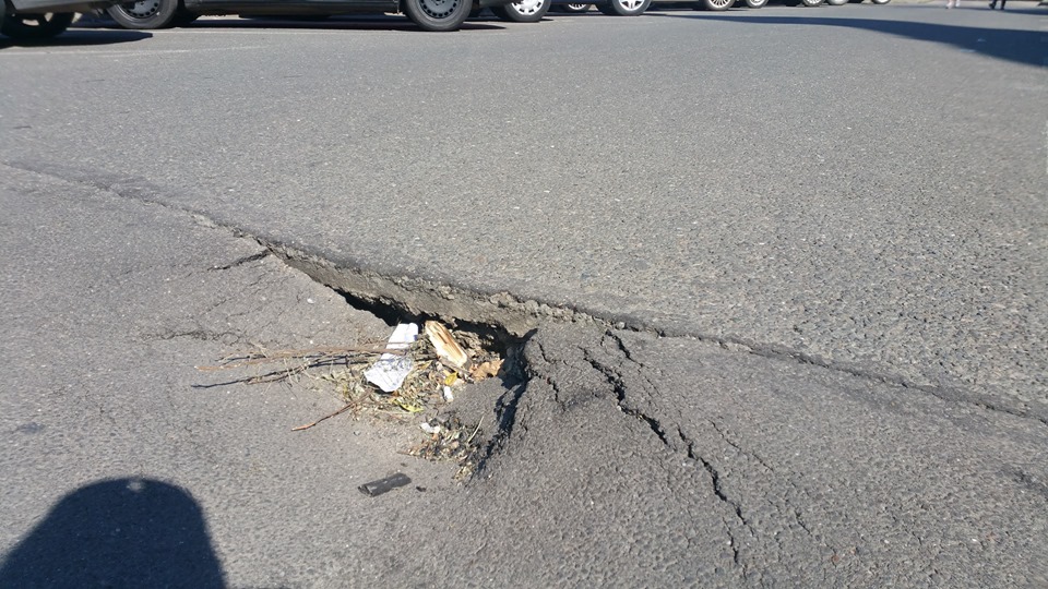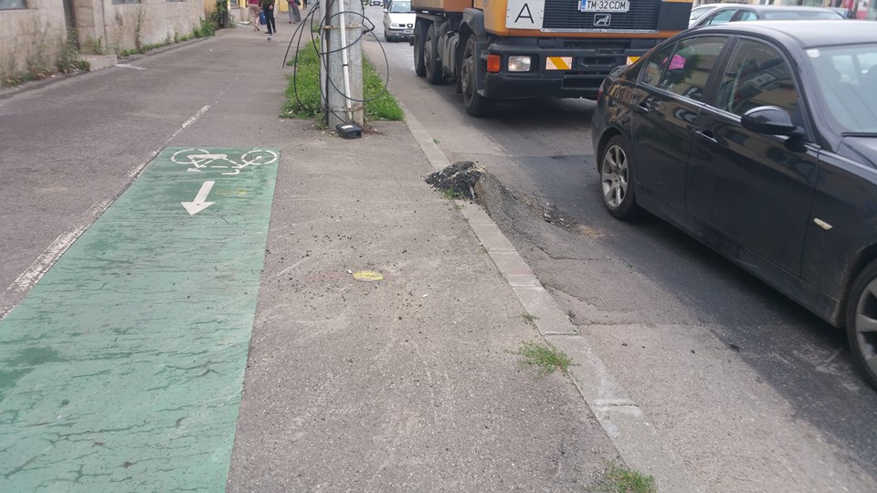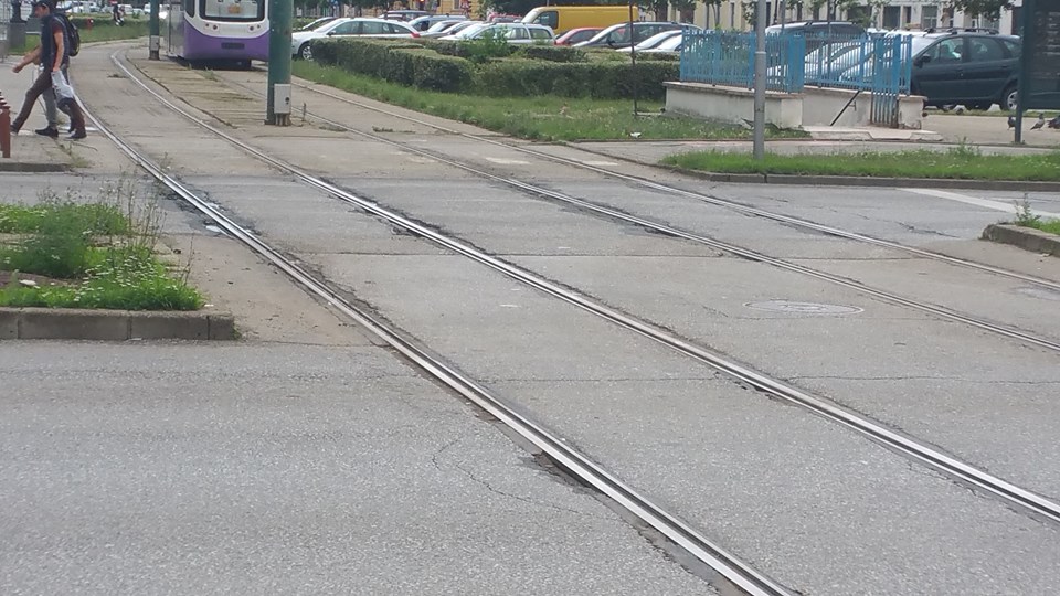 Urmează apoi trecerea peste sinele de tramvai. Lângă linii, șoferii dau de alte gropi și denivelări. Nici măcar parcarea de pe mijlocul bulevardului nu este întreținută. În mijlocul ei este o altă groapă care trebuie evitată. Se vede clar că aceasta s-a format exact într-o plombă pusă recent, dovadă că asfaltul folosit nu este de calitate și lucrarea efectuată în trecut a fost realizată prost.