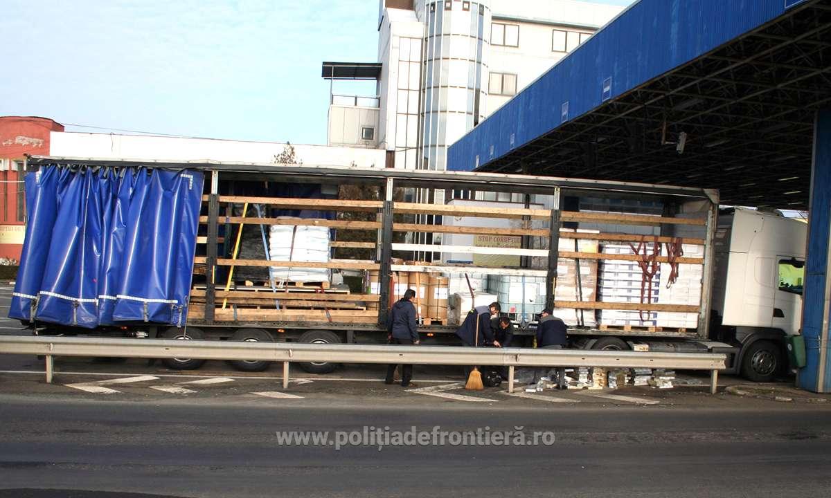 Astfel, în urma controlului amănunțit, poliţiştii de frontieră au descoperit, ascunse între şi sub paleţii de marfă, mai multe cartuşe cu ţigări, marca Benson&Hedges şi Dunhill.