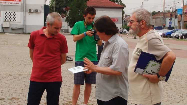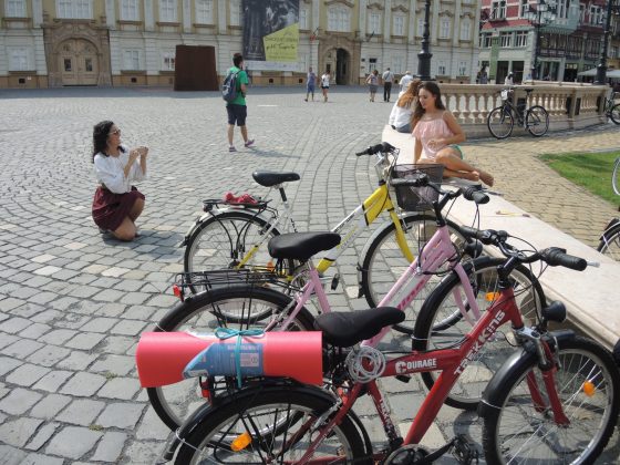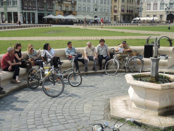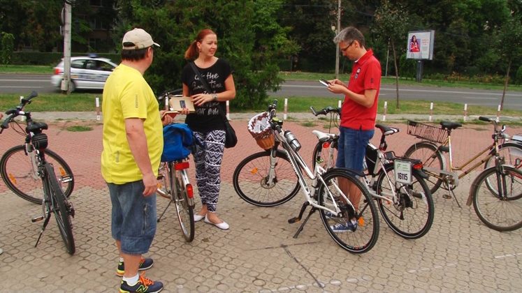 Tura de astă dată a fost mult mai scurtă, a avut cam șapte kilometri. În jurul prânzului au apărut cu mic cu mare împingând bicicletele în Piața Unirii în jurul vechii fântâni arteziene. Ca să arate că nu sunt infractori nu au pedalat ultimii metri, conform reglementărilor ciudate, ci au mers pe lângă vehicule.