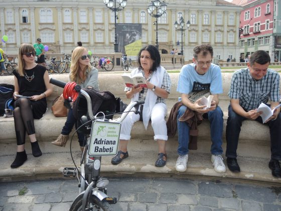 Timpul rămas în plus a fost dedicat unei întâlniri cu cartea tipărită și cu cei mai cunoscuți scriitorii timișoreni. La fântână au putut fi recunoscuți Adriana Babeţi, Adrian Bodnaru, Eugen Bunaru, Adela Dragomir, Viorel Marineasa, Alexandru Potcoavă, Radu Pavel Gheo, Daniela Raţiu și Daniel Vighi. Unii au venit cu bicicletele personalizate cu propriul nume. Ba chiar au pregătit și texte adaptate momentului. Astfel, cititorii avizi au aflat cum a debutat Adriana Babeți pe tricicletă și de ce băiatul ofițerului sovietic cu al său Sputnik cam lua bătaie. La fel de interesantă a fost și analogia trasată de Daniel Vighi între instrumentele de suflat de jazz și biciclete.