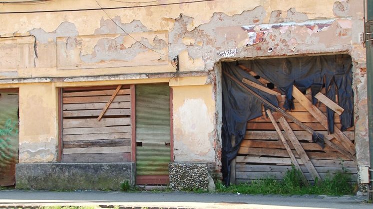 Cum te apropii de Piaţa Traian, te loveşte în tâmplă un gând al demolării istoriei, fiindcă paragina, indiferenţa şi nepăsarea merg mână în mână, foste spaţii comerciale părăsite, cu gratii la uşi, dar cu tencuiala căzută până dincolo de cărămidă, până în istoria acelor construcţii, până în inima istoriei. Îţi este teamă să şi treci pe stradă să nu iasă din vreun subsol vreun şarpe, vreo mână să te tragă în subterane. Clădiri în paragină, străzi în paragină, denivelări, gropi, tencuiala cade, un oraş al groazei, nu doar o… piaţă a groazei.