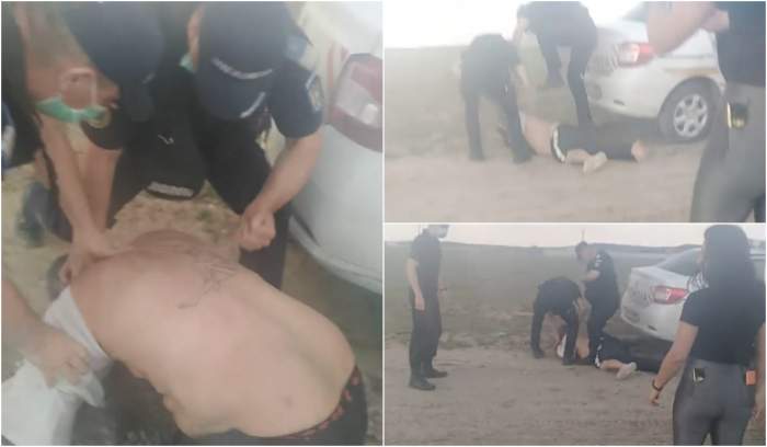 Imagini teribile au fost surprinse luni de dimineață în localitatea tulceană Mihail Kogălniceanu, unde mai mulți agenți de poliție și jandarmi au culcat la pământ un căruțaș și l-au lovit cu picioarele.