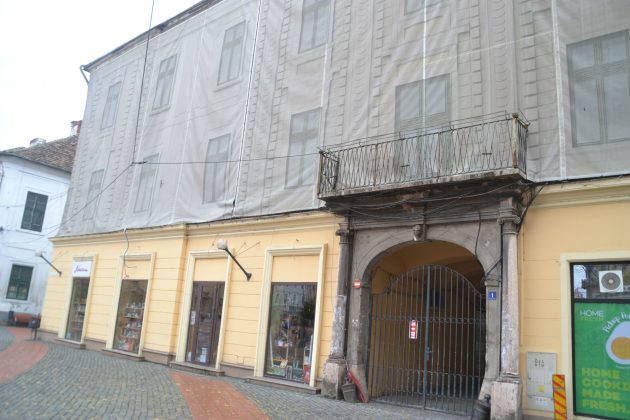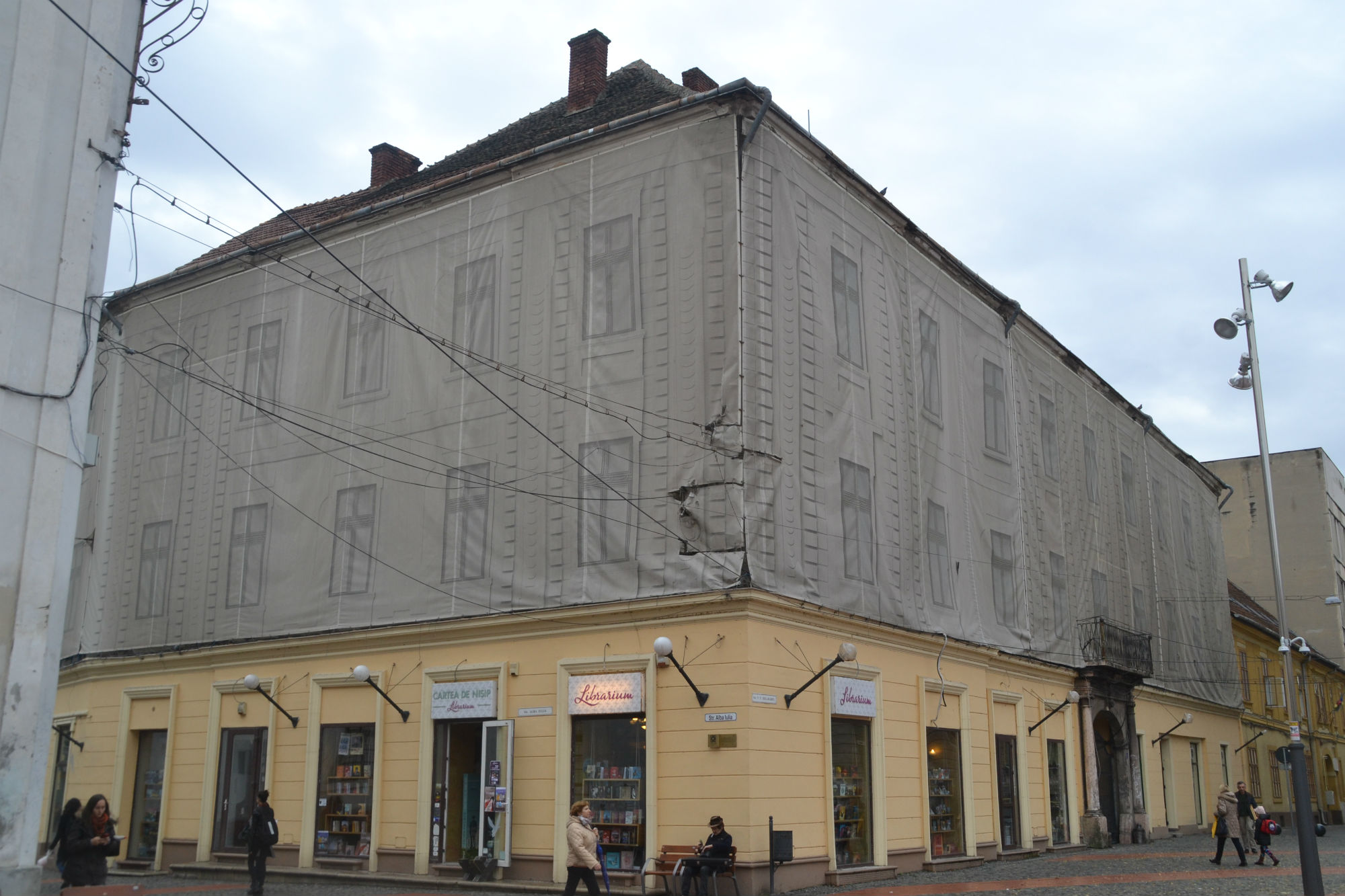 În colţul de sud-vest al Pieţei Libertăţii, de unde începe strada Alba Iulia, se află o construcție care se rușinează să-și arate fața. Firanguri decolorate, puse parcă de un gospodar nepriceput, care nu știe că acestea ar trebui instalate pe interior, ascund privirii degradarea. La începuturi, acestea aveau desenate elemente ce imitau ferestrele și alte elemente de decor, pentru a salva aparențele. Dar timpul și soarele au decolorat zdrențele.