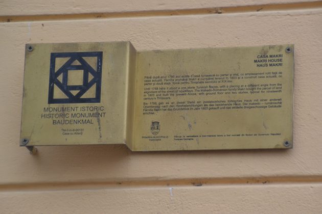 Probabil că afacerile îi mergeau bine aromânului, de a ajuns să construiască una dintre cele mai mari case de la începutul secolului XIX, chiar în piața rezervată, pe atunci, clădirilor admistrației militare. Casa Macri a fost printre primele clădiri civile de aici. Acest Thomas Makry (după cum apare în grafia germană) avea ceva influență, dacă și-a construit locuința între comenduirea garnizoanei și locul unde acum se află Casa Armatei.