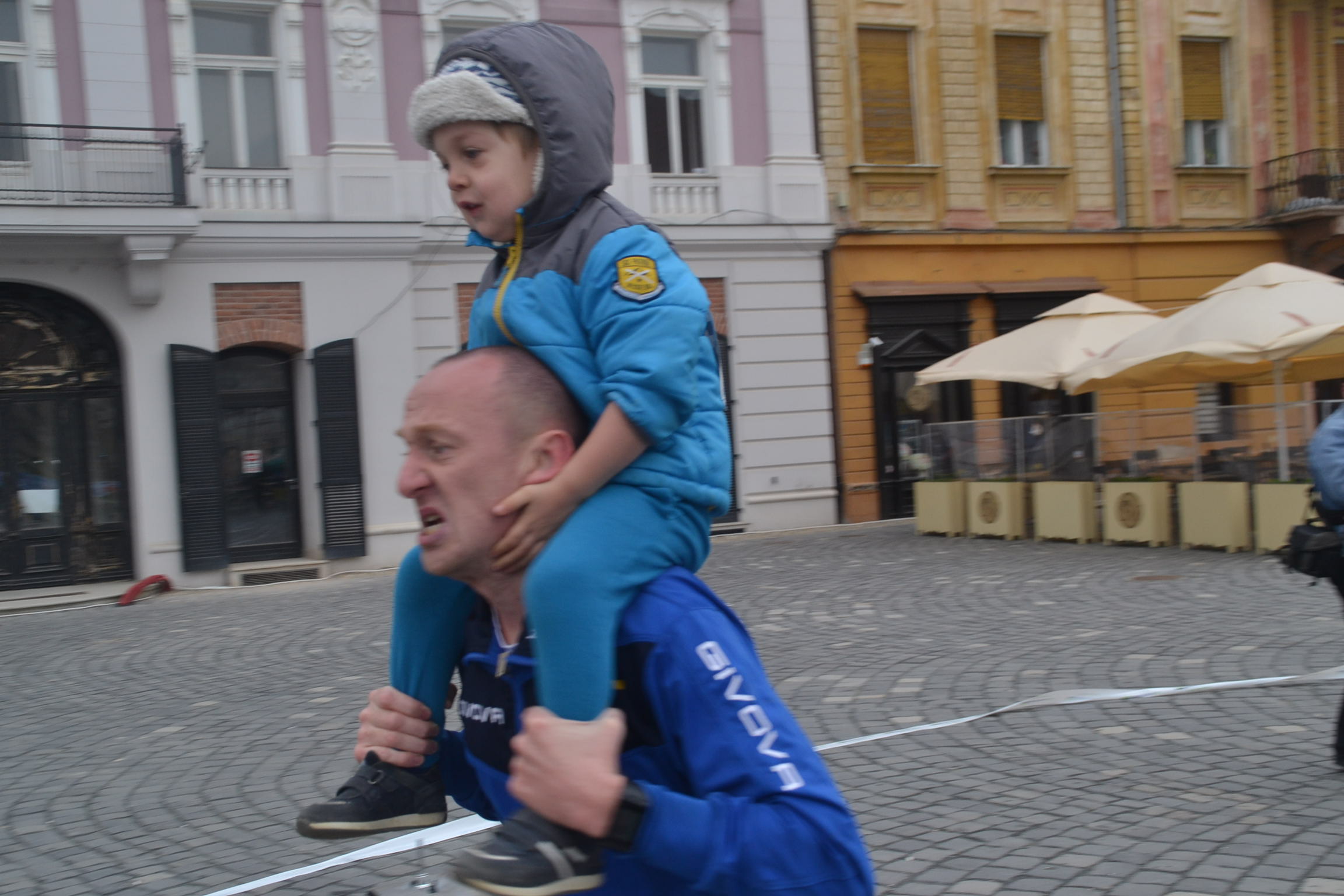 Ca un fapt inedit, au fost şi copii care au alergat în cursele adulţilor, dar şi adulţi care au alergat împreună cu copiii mici, un tătic cu copilul în spate, iar un altul chiar cu copilul în cărucior.