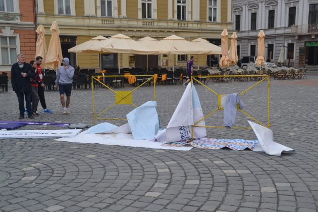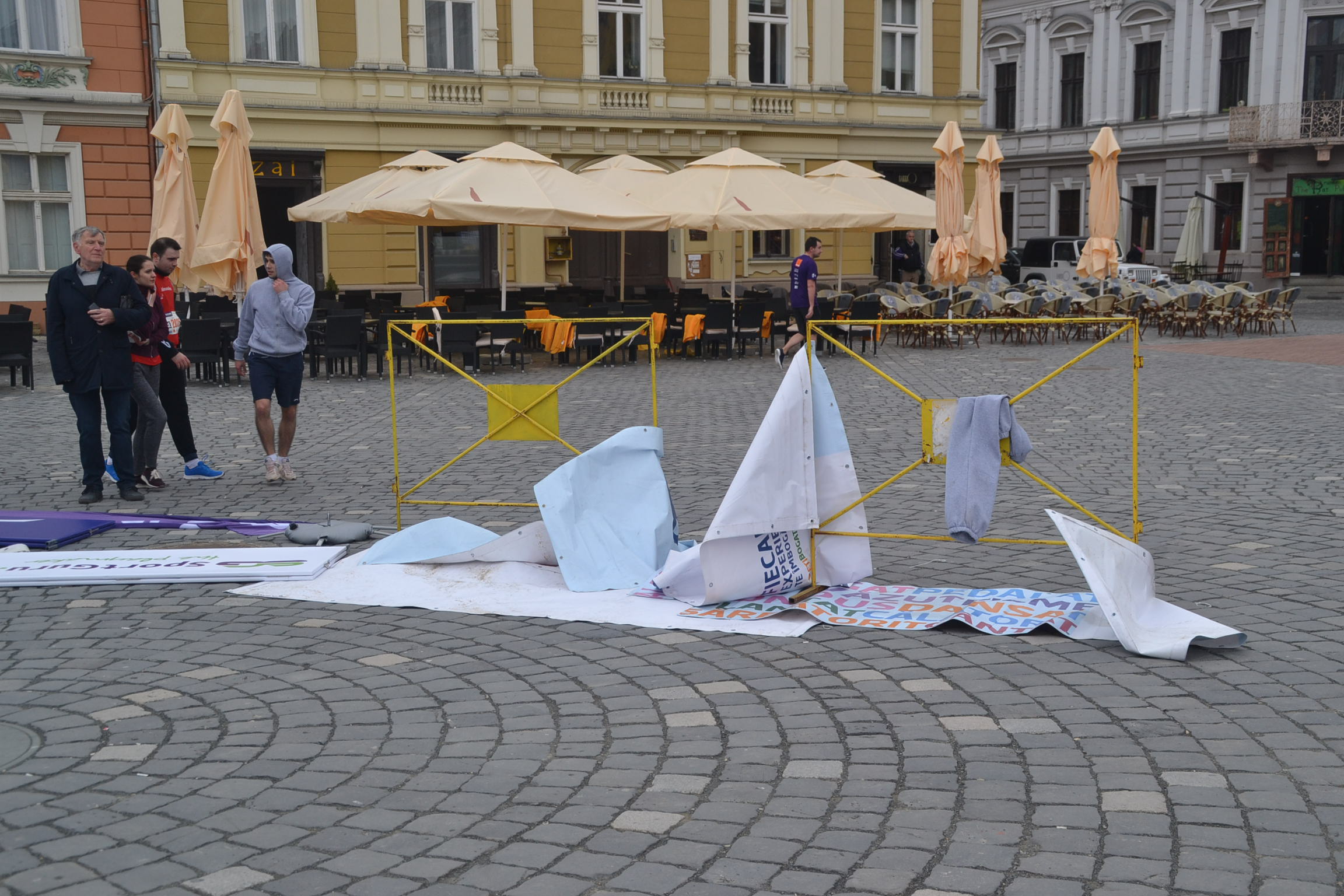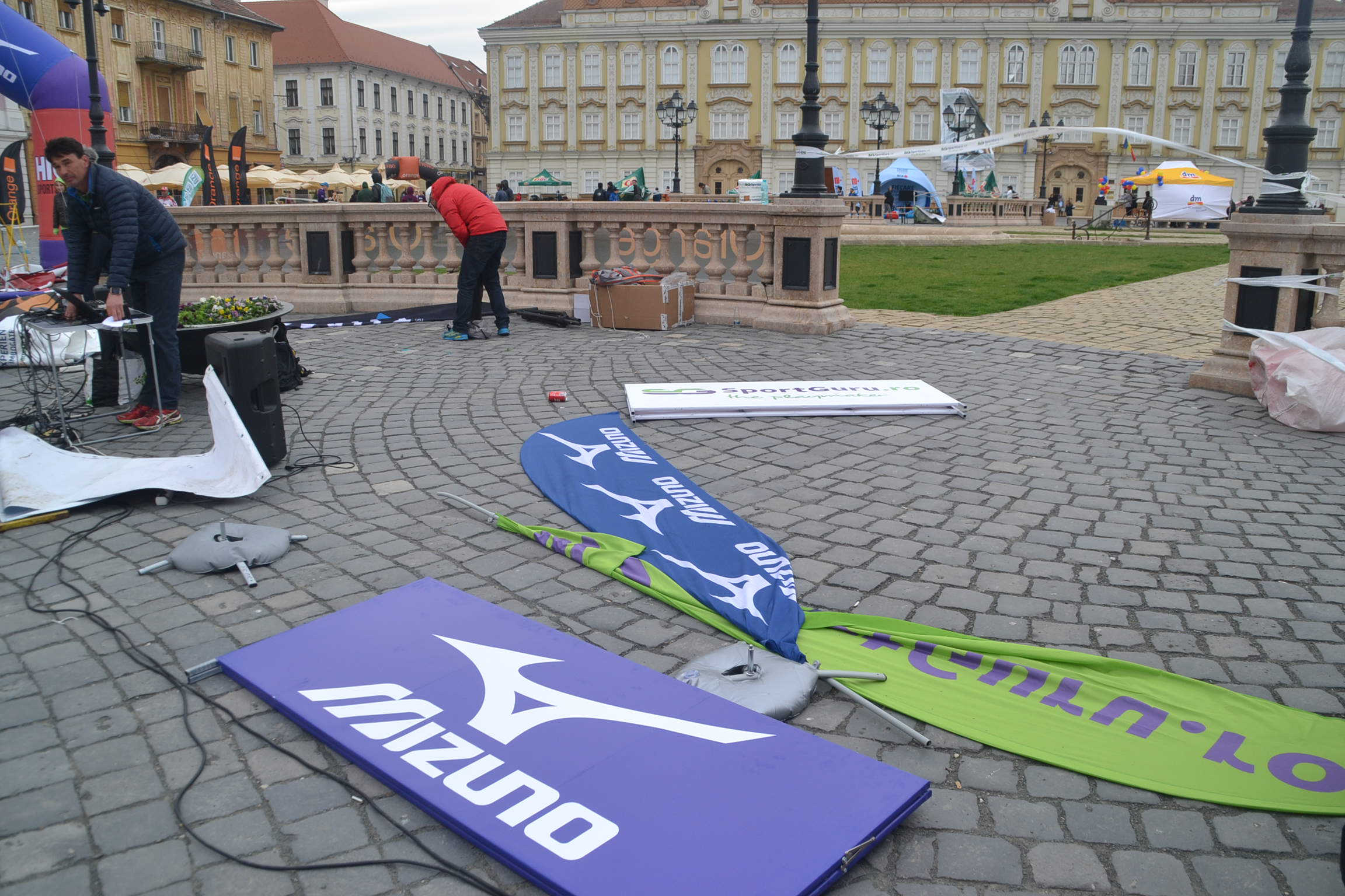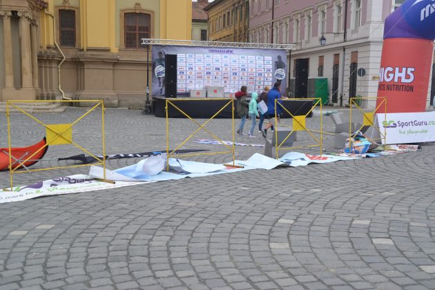 Vântul puternic le-a pus probleme organizatorilor. Imediat dupa start, o rafală a dărâmat banerele publicitare, corturile organizatorilor, gardurile despărţitoare care marcau traseul cursei.