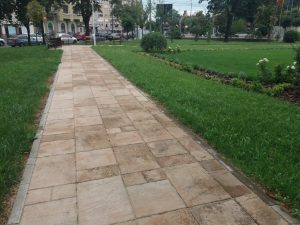Termenul inițial de finalizare a fost hotărât la un an. A trecut anul, și nu se dădea nici un semn că cineva s-ar grăbi să finalizeze ceva. E drept că au mai apărut ba câte un muncitor cu o lopată, ba câte un escavator ce mai scurma molozul rezultat din decopertatrea vechilor alei. S-a muncit cu un entuziasm sublim, cam odată la săptămână se mai mișca câte o piatră pe șantier. Colac peste pupăză, a mai venit în septembrie 2017, celebra furtună ce a devastat întreg orașul. Ce pretext mai bun de a tergiversa lucrările și de amâna totul până la primăvară. Așa, târâș-grăpiș, a mai trecut o primăvară, apoi o vară caniculară din cauza căreia nu s-a făcut mai nimic.