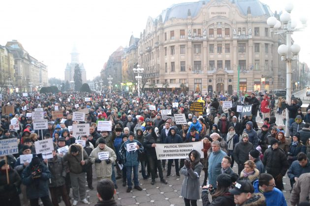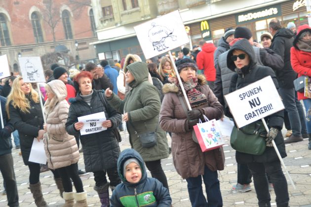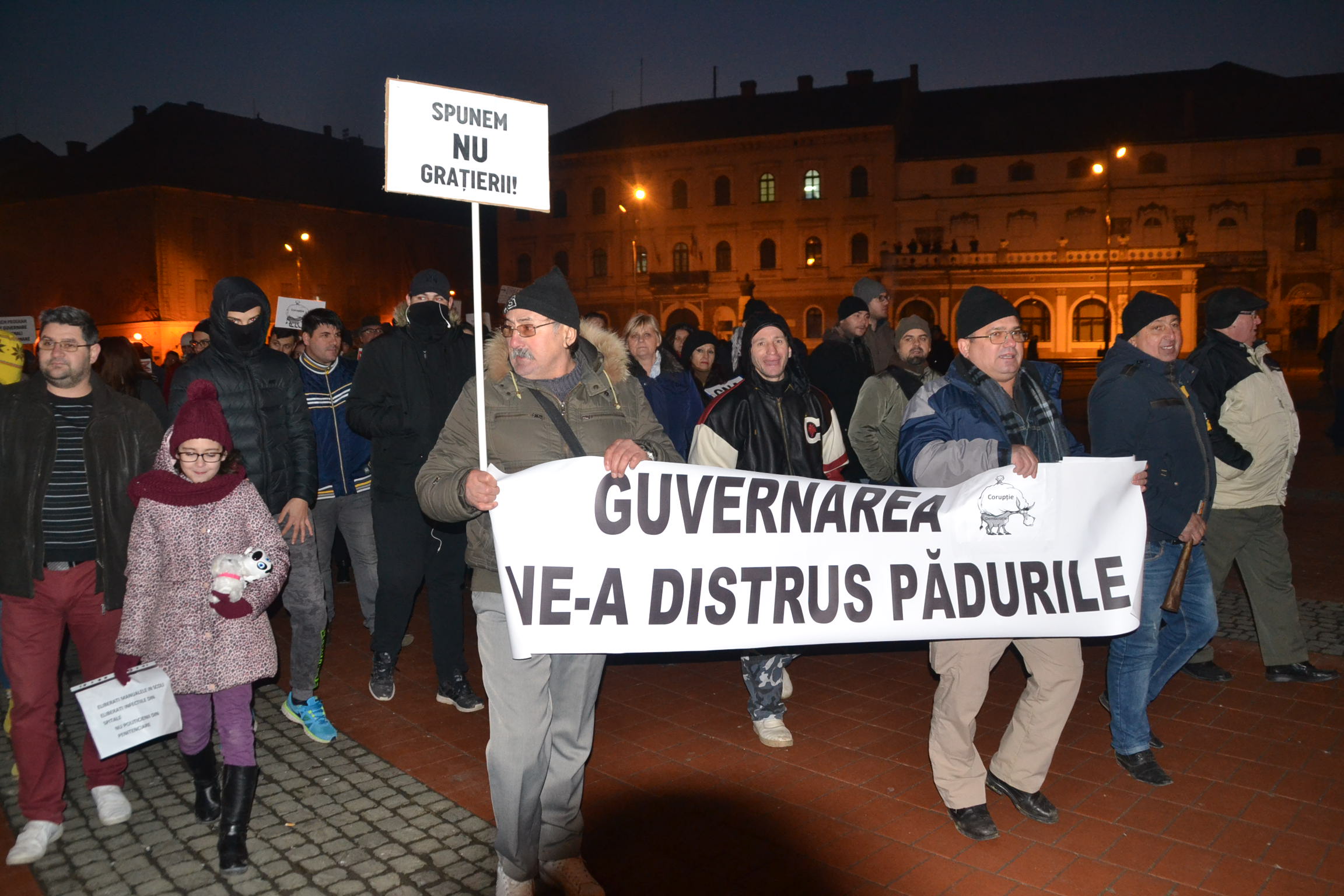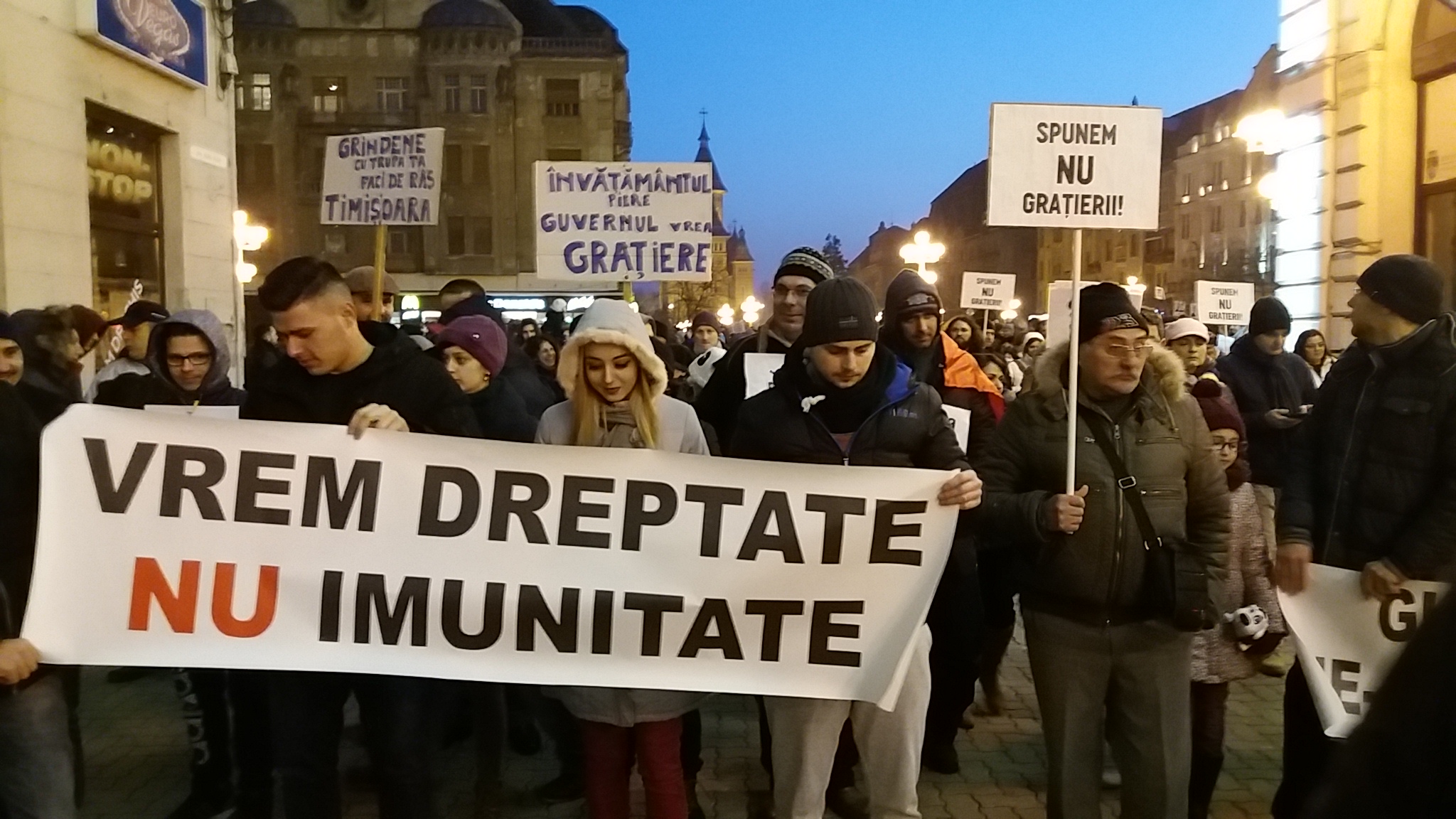 Pentru a patra oară, în Piaţa Operei din Timişoara, s-au adunat grupuri de manifestanţi care protestează împotriva ordonanţelor de urgenţă ale Guvernului, referitoare la graţiere şi amnistie, precum şi a celor pentru modificarea codului penal şi a codului de procedură penală.