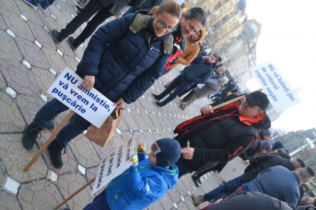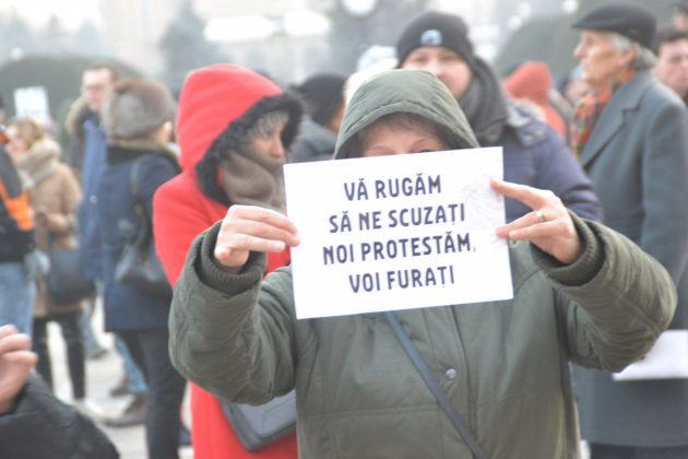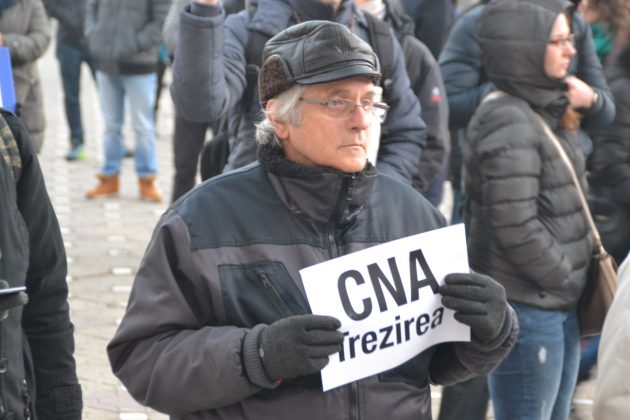 O protestatară a cântat „Balada lui Dragnea”, se strigă „Grindeanu hoţ”, „Demisia”, dar şi lozinci împotriva CNA.