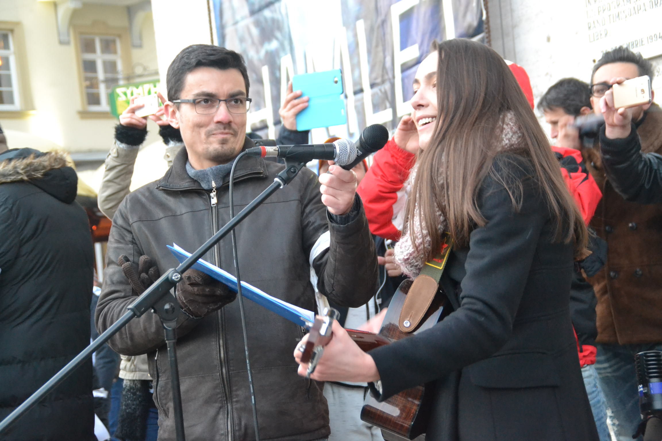 Câteva mii de persoane sunt adunate la această oră în centrul Timişoarei.