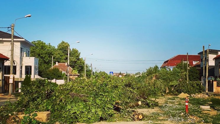 Timișorenii care stau în zona Calea Bogdăneștilor au văzut că de pe șantier au dispărut unii arbori. Pentru modernizarea străzii și a liniilor de tramvai a fost nevoie de tăierea a aproape 160 de copaci, potrivit Primăriei Timișoara. Operațiunea a fost surprinsă în fotografii de timișoreni, care le-au publicat pe facebook.