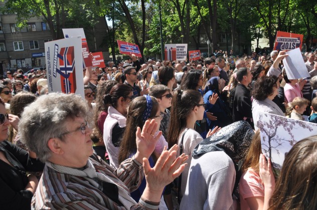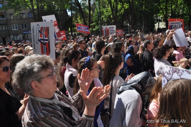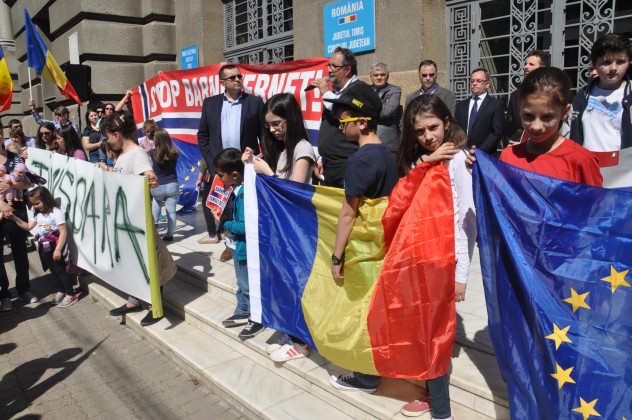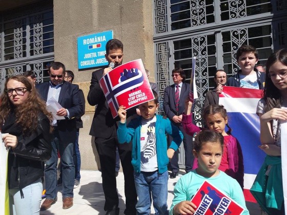 Câteva sute de persoane, printre care foarte mulţi copii, cărora li s-a alăturat şi primarul Nicolae Robu, s-au mobilizat astăzi la Timişoara, în faţa Prefecturii, în semn de solidaritate cu familia Bodnariu, ai cărei copii au fot luaţi de autorităţile norvegiene. Înarmaţi cu pancarte, dar în mod paşnic, ei au îndemnat la o rezolvare diplomatică a cazului, amintind de valorile creştine uitate.