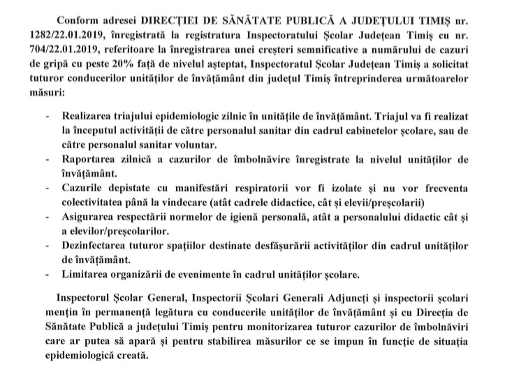 În aceste condiții, se impun următoarele măsuri urgente în unitățile școlare: