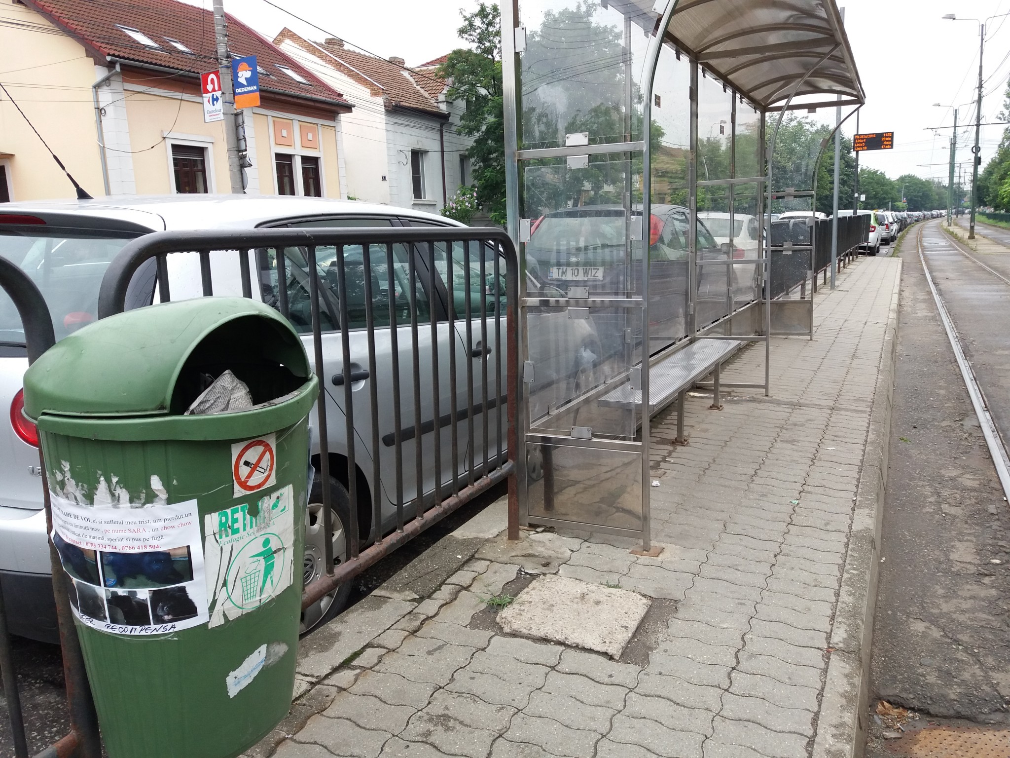 Tramvaiul mai merge el ce merge dar ar trebui să mai și oprescă. Aici apare altă problemă. Stațiile sunt marcate cu grămezi de mizerie sau bălți de apă daca plouă sau băltoace de ulei ce curge de la toate instalațiile tramvaiului. În unele locuri (ce-i drept destul de puține) sunt și așa numitele refugii. De fapt, nu poți deloc să te refugiezi din calea ploii. Sub copertină plouă ca afară sau mai tare. Biata încropeală, cu titulatură pompoasă de refugiu, este o caricatură a ceea ce ar trebui să fie. Cine are proasta inspirație să se așeze pe minusculele băncuțe riscă să-și facă ferfeniță veșmintele. Cuie, șuruburi sau suduri neprelucrate, toate atentează la integritatea nădragilor călătorilor. Aceste copertine sunt aruncate cu furca. Găsești câte una acolo unde nu este nevoie deloc. Iar unde s-ar impune câte una lipsește cu desăvârșire. Bieții călători ce să facă? Așteaptă stoic în ploaie câteva zeci de minute. Întotdeauna mai multe decât scrie pe panoul inutil de afișaj.