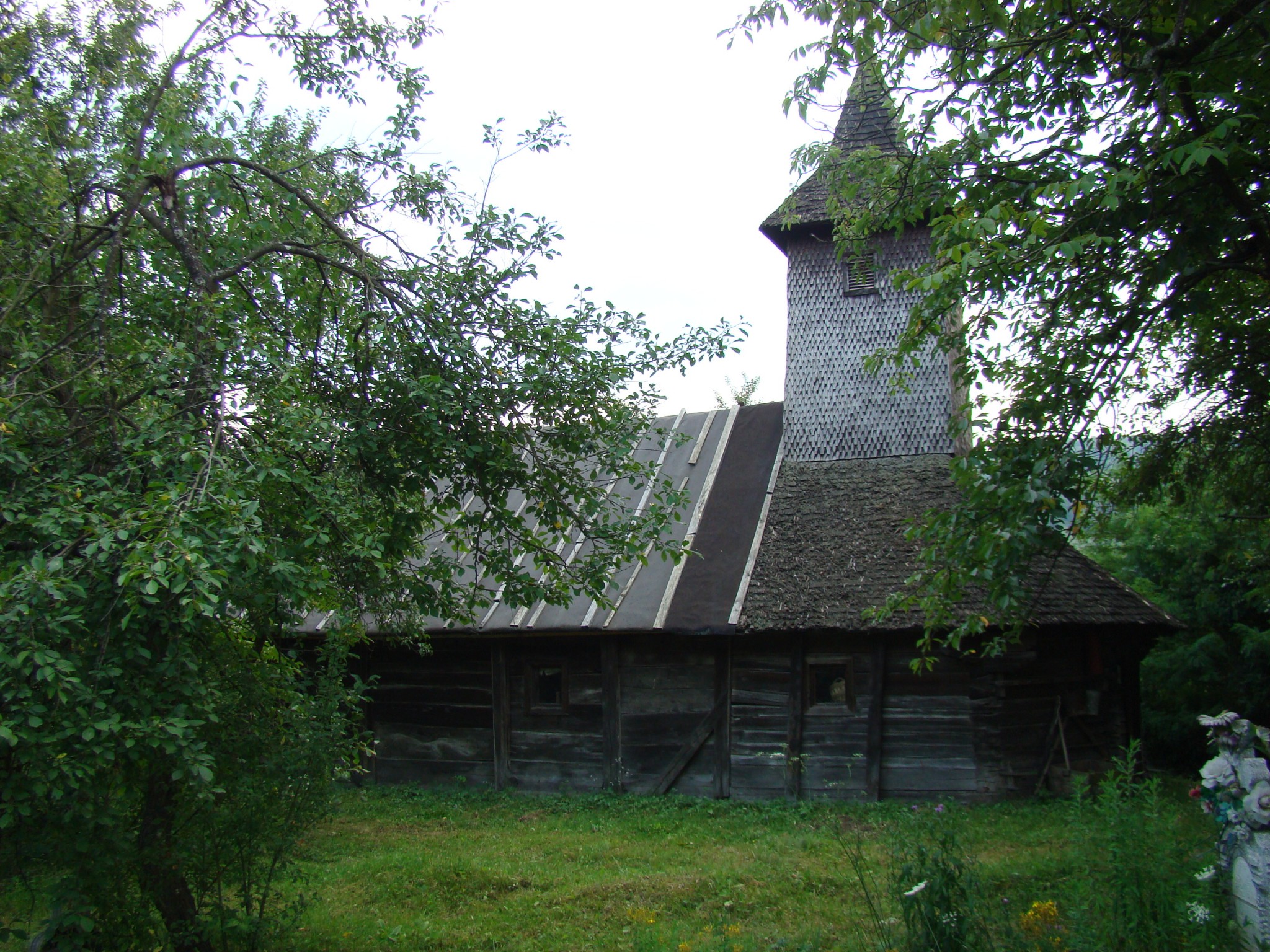 Pronaosul tăvănit, naosul acoperit cu un semicilindru longitudinal din scânduri, iar altarul acoperit prin fâşii curbe de scânduri.