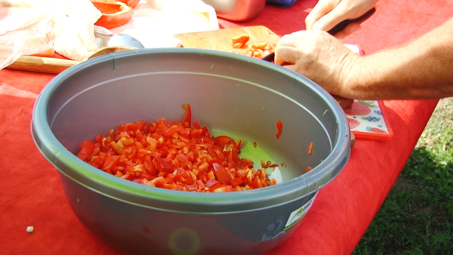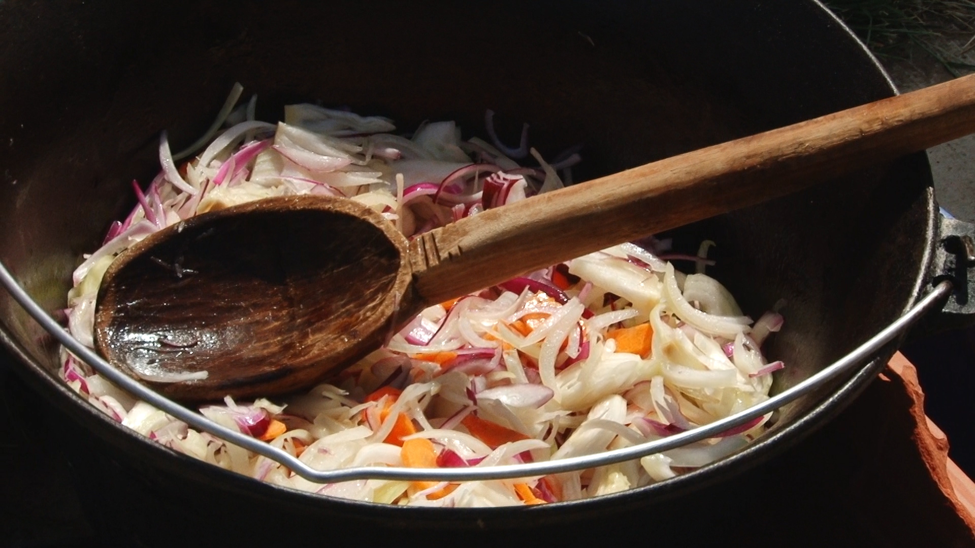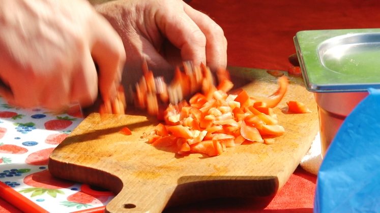 Imediat au pus mâna pe cuțite. Au tăiat carnea, cartofii și alte legume din cele mai obișnuite. Doar mirodeniile au rămas secrete, fiind un fel de marcă înregistrată a fiecărei echipe. A mai ras doar un pas. Dar cel mai important, anume, mestecatul în oalele supradimensionate.
