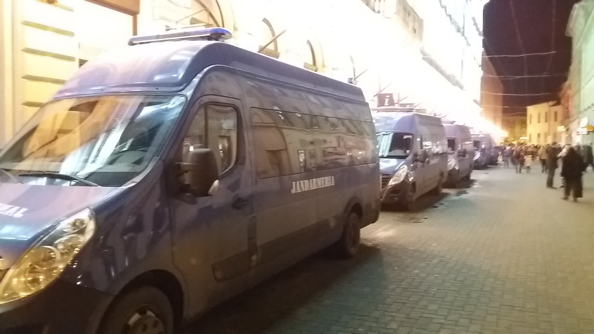 Conform forțelor de ordine, asistăm la cea mai amplă manifestație din ultimile seri, poate și datorită faptului că este sfârșit de săptămână și lumea nu merge maine la servici. Jandarmeria a luat măsuri suplimentare și a mărit numărul celor puși să supravegheze protestul dar și numărul de dube parcate pe străduțele din apropierea Pieței Operei, mai mult decât dublu față de seara precedentă.