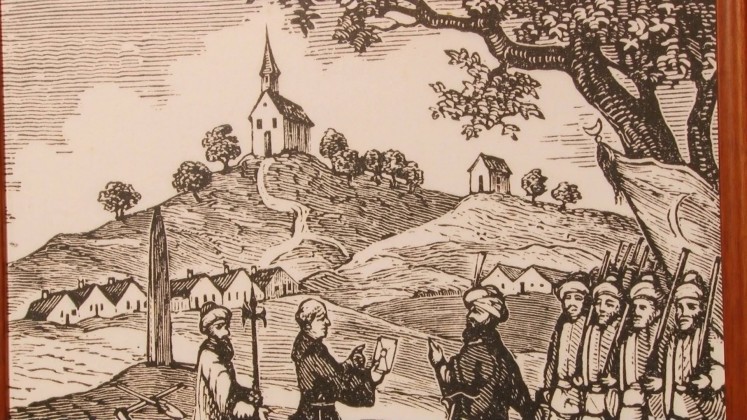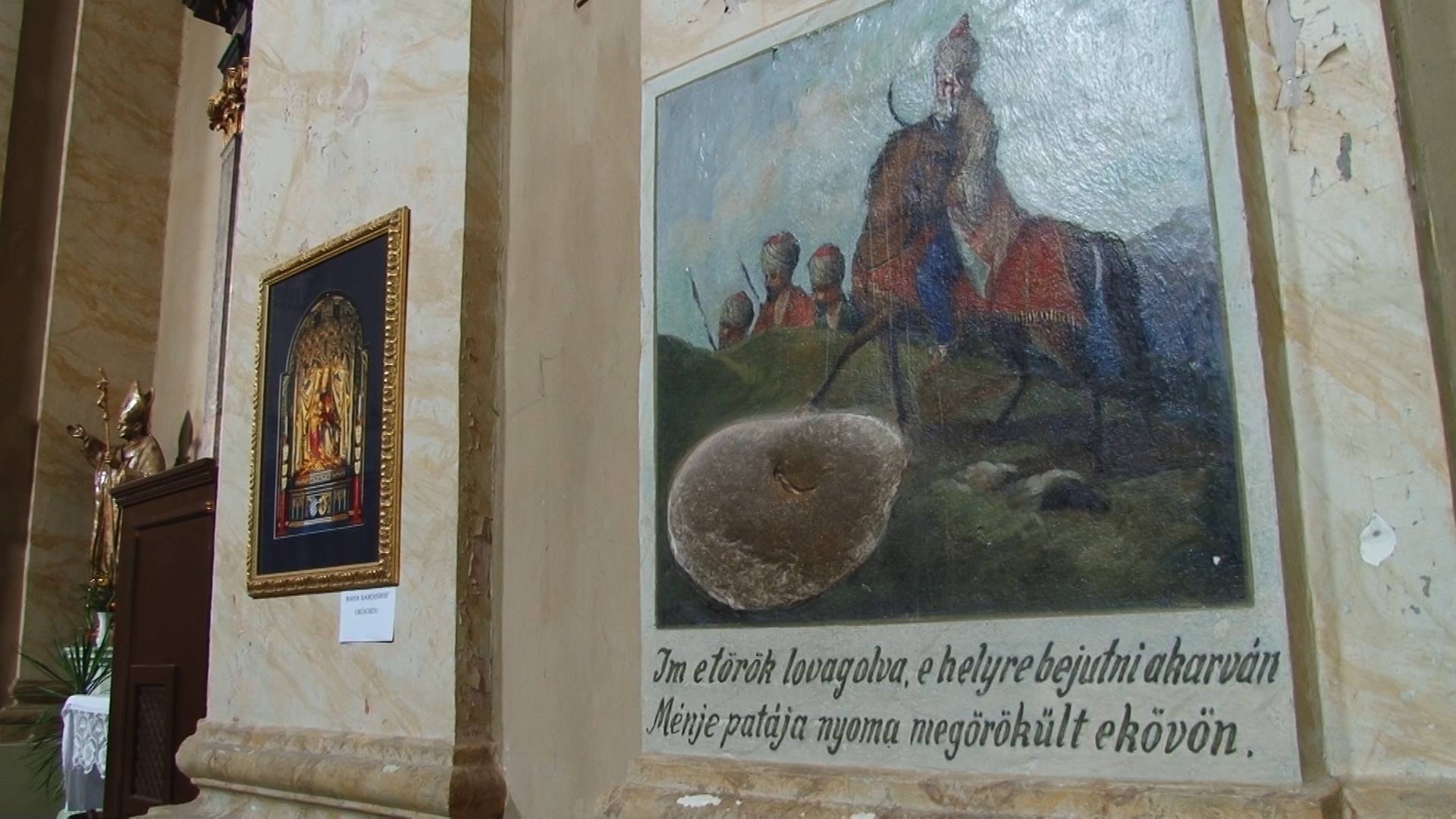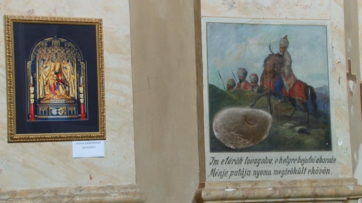 Conform unei alte mărturii ni se vorbește despre un călăreț turc, care a vrut să intre călare în biserică pentru a o profana; el ar fi fost oprit, deoarece copita calului său s-a afundat într-o piatră din caldarâm, ce devenise dint-o dată foarte moale. Scena și piatra pot fi și azi văzute pe peretele lateral-dreapta al navei basilicii actuale și ilustrează în mod elocvent episodul respectiv.