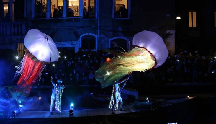 Show-ul inaugural, pus în scenă pe Canalul Cannaregio, a celebrat sâmbătă seara temele frumuseții, mării și vanității, printr-o paradă a creaturilor marine ciudate.