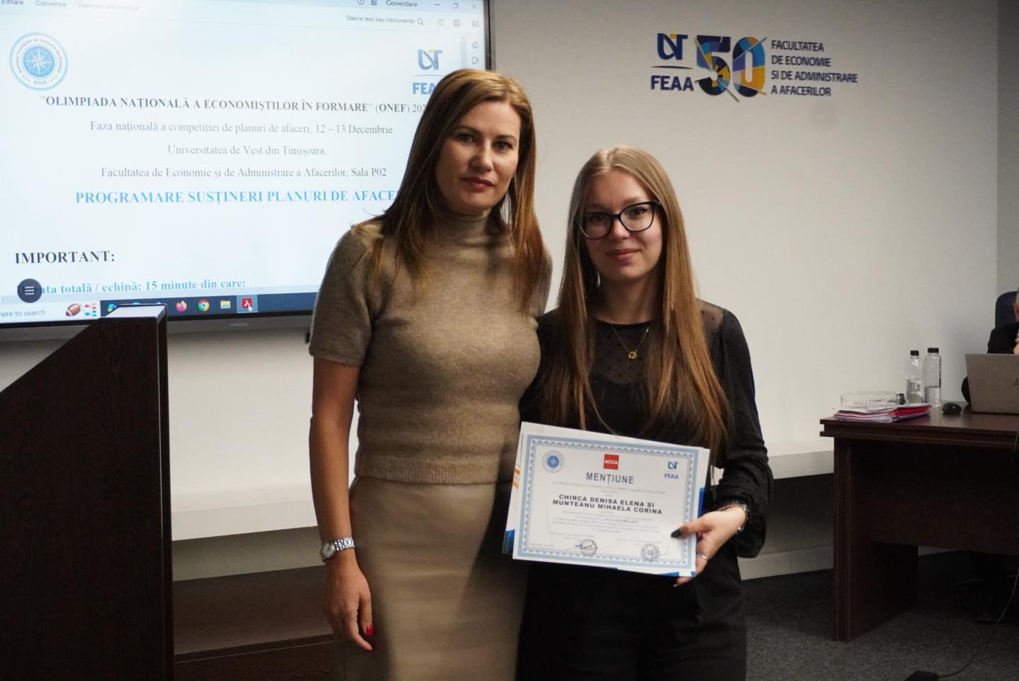 În perioada 12-13 decembrie 2025, Universitatea de Vest din Timișoara (UVT), prin Facultatea de Economie și de Administrare a Afacerilor (FEAA), a organizat Competiția de planuri de afaceri din cadrul Olimpiadei Naționale a Economiștilor în Formare, editia 2025 faza națională. Competiția s-a bucurat de un adevărat succes din perspectiva gradului de participare: au fost prezentate 44 de planuri de afaceri, însumând 72 de studenți participanți de la 28 de facultăți cu profil economic din țară, membre AFER (Asociația Facultăților de Economie din România).