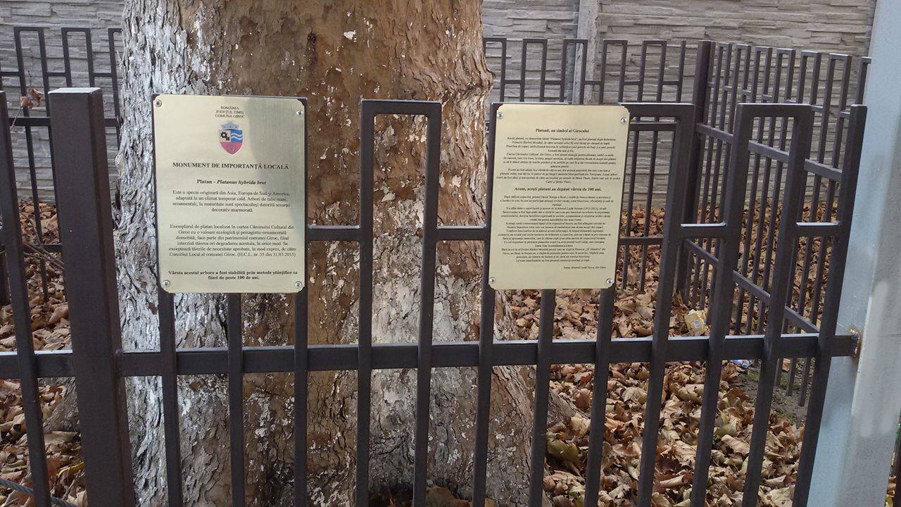 *** În conformitate cu adresele primite de către Primăria comunei Giroc, din partea instituţiilor enumerate mai sus, s-a adoptat, în data de 31.03.2015, Hotărârea Consiliului Local privind instituirea regimului de protecţie şi conservare a exemplarului de platan având o valoare deosebită şi trecerea lui în patrimoniul comunei Giroc.