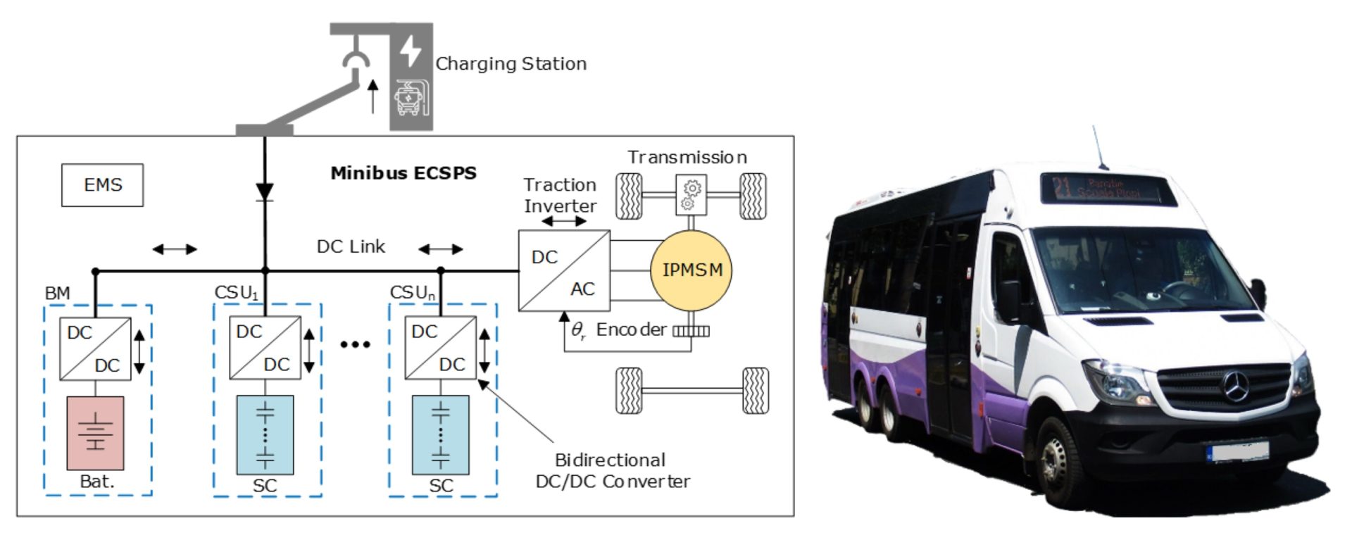 Un autobuz electric fără baterii: energia stocată în supercondensatoare Ideea centrală a cercetării este propunerea unei noi configurații de propulsie electrică pentru un microbuz destinat transportului public urban, în care energia electrică nu este stocată în baterii litiu-ion, ci în supercondensatoare. Acestea au avantajul unei densități de putere foarte mari, ceea ce permite încărcări extrem de rapide – sub un minut –, exact în intervalul de staționare în stații.