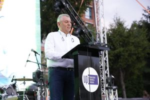 Pe scena instalată pe Stadionul Știința au urcat apoi reprezentanți ai mediului economic, cu care Universitatea Politehnica Timișoara are, probabil, cea mai bună relație din învățământul românesc. Christian von Albrichsfeld, directorul general Continental România, Diana Năstase, director HR la Flex și Sabin Totorean, director general Nokia România, i-au felicitat pe absolvenți pentru reușita lor, le-au urat succes în carieră și în viață, amintind că în lumea de azi, tot mai tehnologizată, aflată într-o schimbare accelerată, provocările sunt mari, dar și oportunitățile sunt la fel. Aceștia au adăugat că angajatorii îi așteaptă, Timișoara de azi oferă locuri de muncă extraordinare, exprimându-și și speranța că poate de aici va pleca și viitorul unicorn al României.