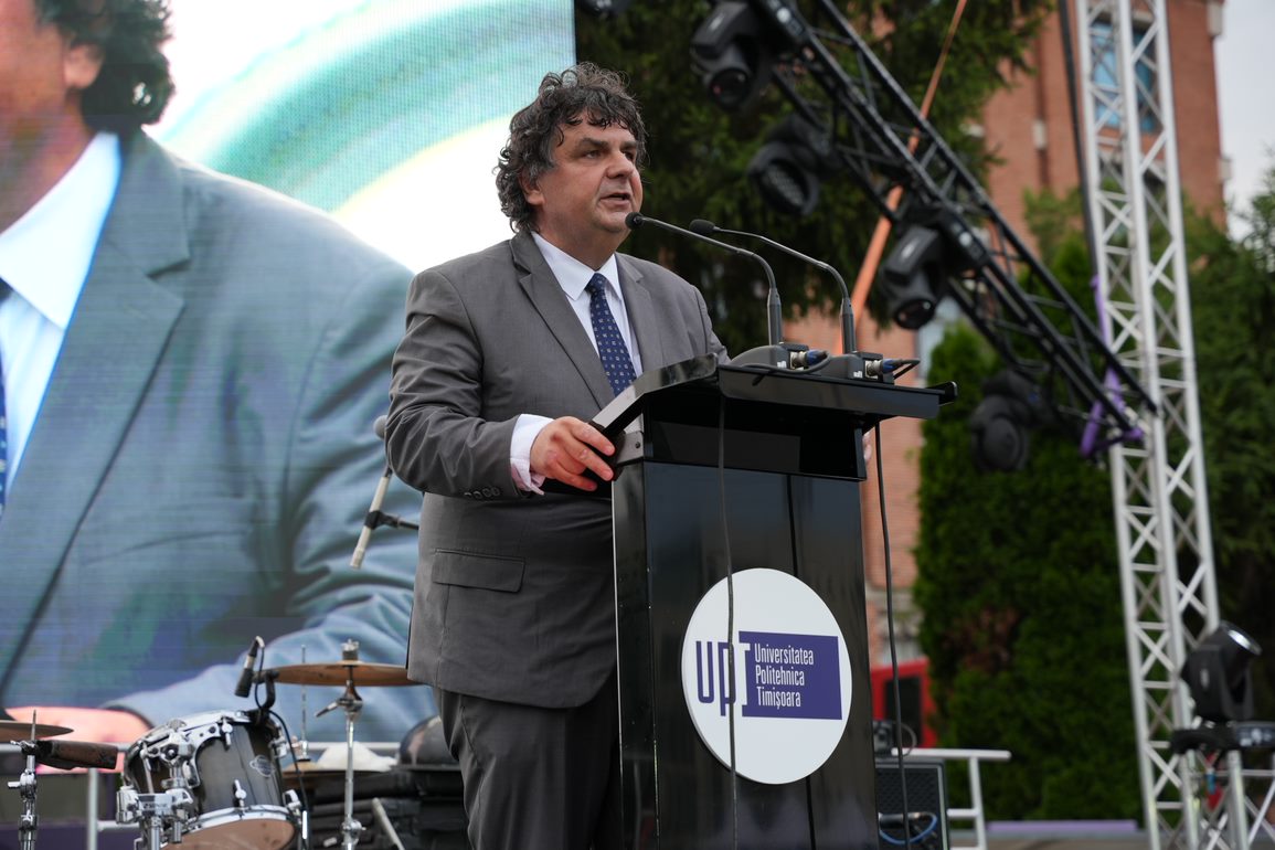 Președintele Senatului Universității Politehnica Timișoara, prof.univ.dr.ing. Radu Vasiu, a rememorat propria sa experiență, de student și, ulterior, cadru didactic al UPT, cu toate schimbările care au avut loc, de la Revoluție și reforma sistemului educațional, până la internaționalizarea și integrarea în sistemul de învățământ superior european, declarând că „pentru voi este un final, al perioadei de studii, dar, totodată, și un nou început, în care intrați cu un nou statut, acela de inginer”.