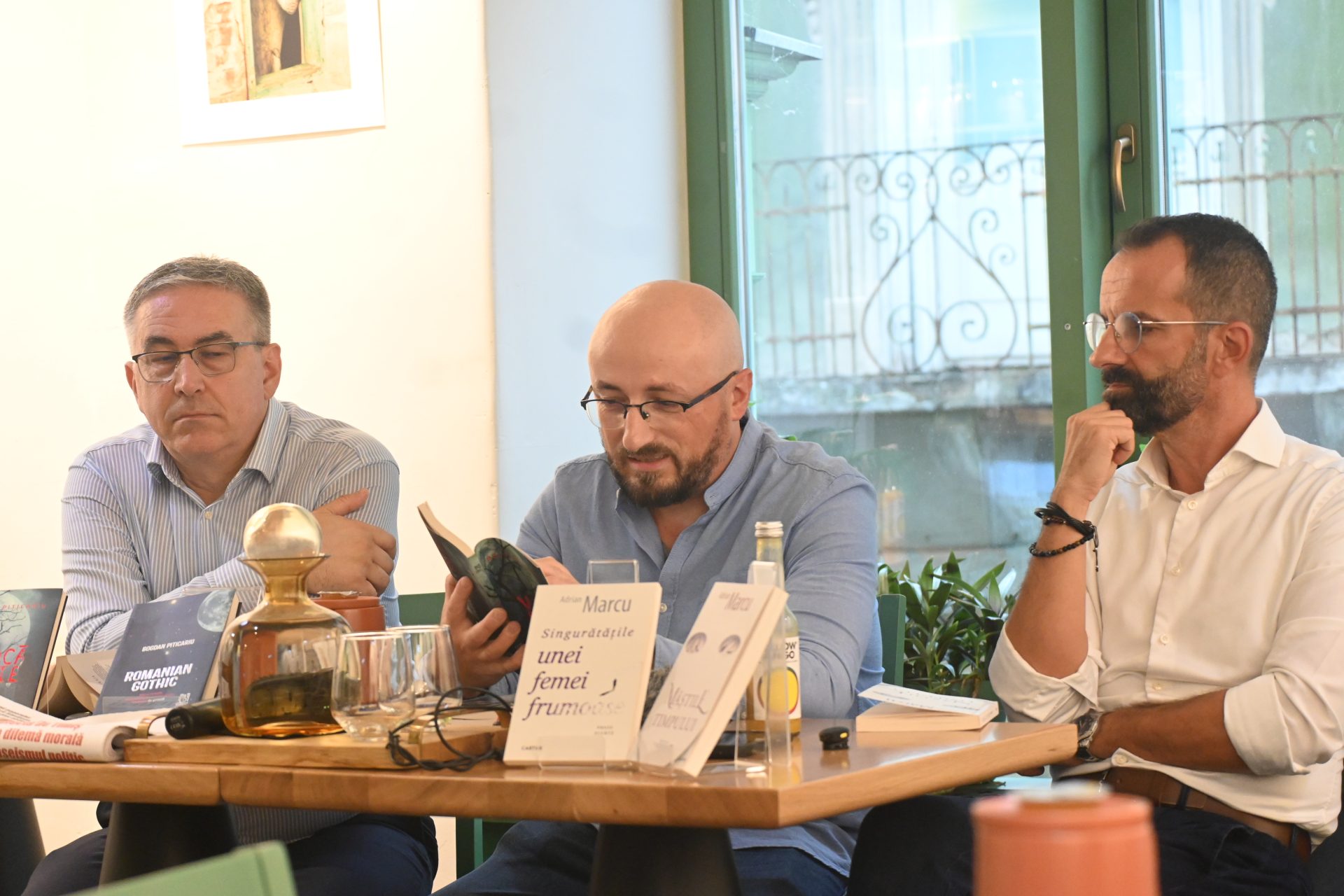 Jurnalistul Adrian Marcu a venit cu volumul de proză scurtă „Singurătățile unei femei frumoase” și cu romanul „Măștile Timpului”. Cât despre traducătorul Bogdan Piticariu să spunem că a adus cu sine și a citit din genul său favorit de scriere, romanul negru, horror, sau de groază: „Votcă Roșie” și „Romanian Gothic”.