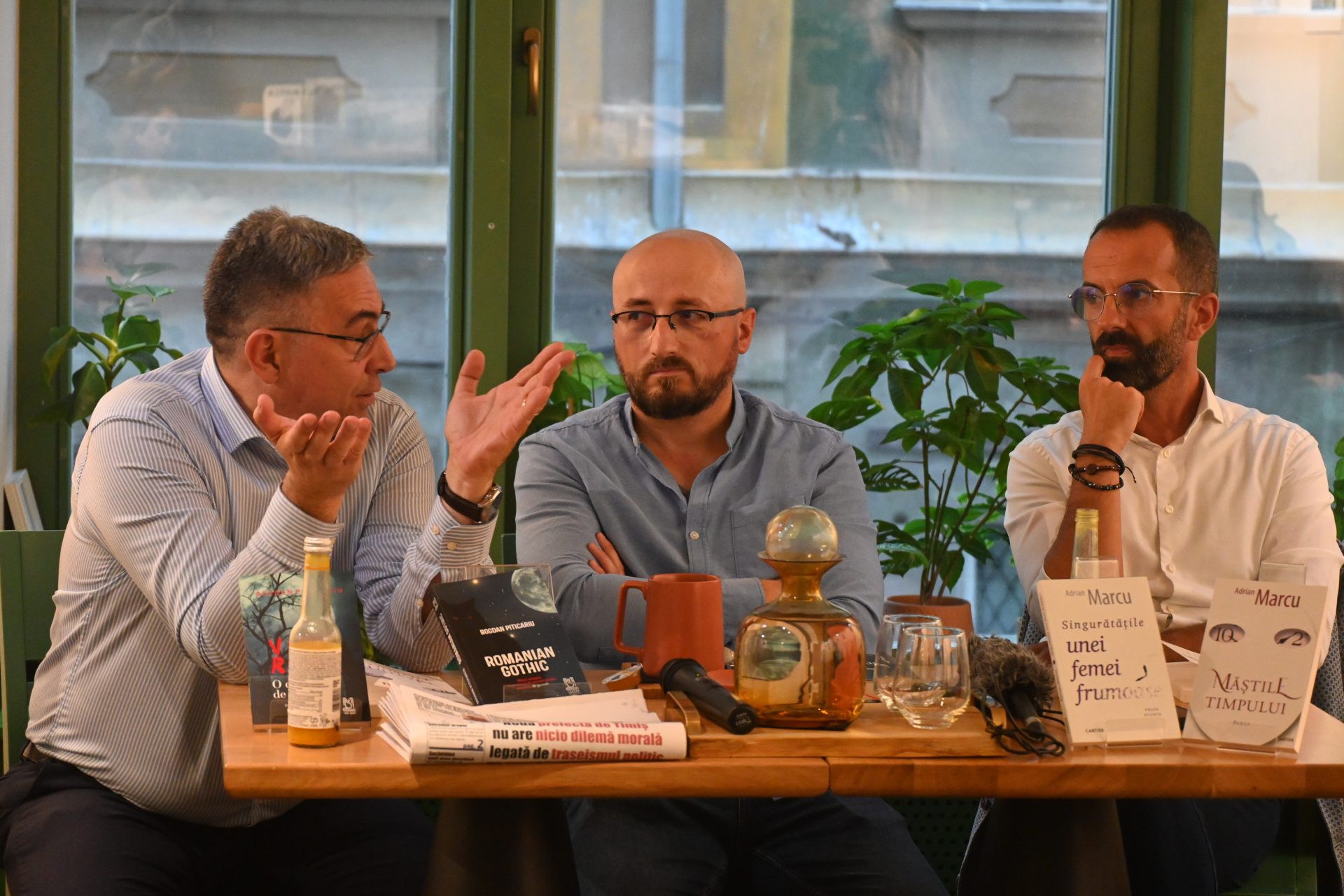 Cei doi autori timișoreni: Adrian Marcu și Bogdan Piticariu după ce au citit din creațiile lor au stârnit o adevărată dezbatere despre oraș, societate, revoluția locală dar și cele din toată lume, cultură, dictatură ori libertate. După lectură, au urmat întrebări și taclale pline de miez, pentru că doar literatura mai salvează câte ceva din cotidianul asurzitor ce ne înconjoară agresiv.