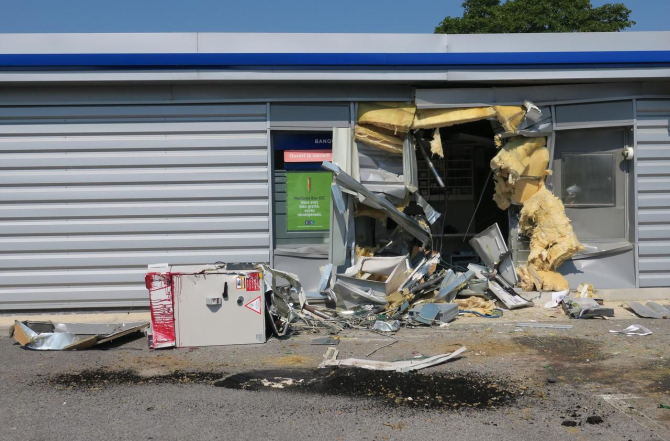 În timpul nopții, cinci bărbați au folosit un tractor pe care l-au furat pentru a smulge seiful unui bancomat. Doi dintre ei sunt încă pe fugă și sunt căutați în toată Franța.
