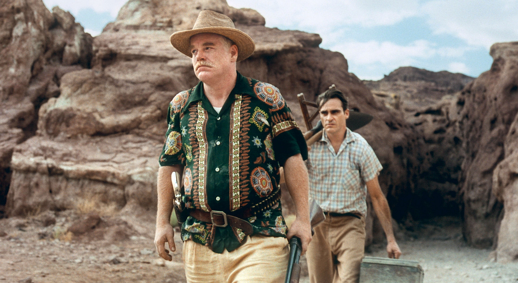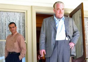 Joaquin Phoenix nu poate dezamăgi, în cazul acesta nefiind vorba de actorie, ci de o esență a gestualului, de o atmosferă machiavelică inertă în figura sa, gata să izbucnească haotic la nevoie. După ce a suferit, din nou, o slăbire dramatică, cu scopul de a construi un caracter osos din toate punctele de vedere, cu un chip bine conturat, el construiește un conflict între ochii mari, angelici, și bolnăviciunea provocată de alcool. Astfel ia viață Freddie Quell, un soldat marin dat afară din armată din cauza pshiozei de care suferă, alături de obsesii sexuale și de alcoolism, care își urmărește inevitabil destinul, ca pe o lumină de far, ori, în cazul acesta, îndreptându-se către vaporul răspânditor de muzică și strălucire, ancorat accidental lângă drumul său.
