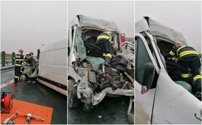 În accident au fost implicate o autoutilitară și un autotren, în care se aflau doar șoferii. În urma impactului, șoferul autoutilitarei a rămas încarcerat. Victima încarcerată a fost extrasă de echipajul de descarcerare și predată echipajului medical SAJ, conștientă, cu politraumatisme.