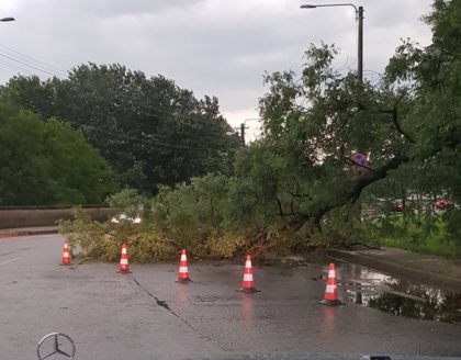 Situaţii de copaci căzuţi pe drumuri sunt semnalate şi în judeţ.
