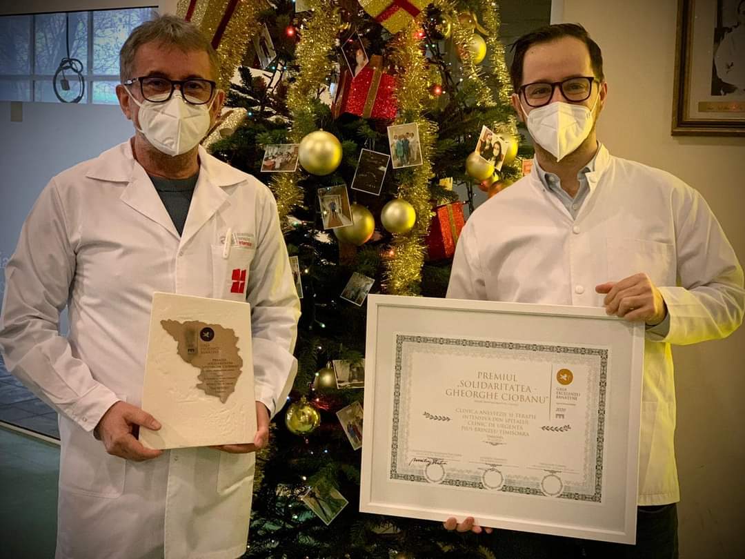 Clinica de Anestezie și Terapie Intensivă a Spitalul Județean Timișoara, condusă de medicul Dorel Săndesc a fost premiată în cadrul Galei Excelenței Bănățene cu distincția ,,SOLIDARITATEA GHEORGHE CIOBANU”, în semn de apreciere pentru sutele de vieți salvate de-a lungul acestui an dificil pentru umanitate și nu numai.
