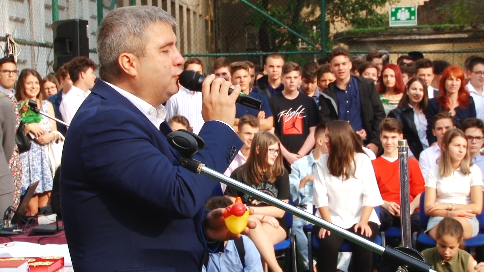 Profesorul Sorin Ionescu a punctat pe scurt noutățile noului an. Dintre acestea cea mai interesantă va fi demararea laboratorului de robotică la care vor avea acces și elevi de la alte școli. Evenimentul de duminică ce a aliniat la start pe canalul Bega rățuștele de cauciuc a permis adunarea unei frumoase sume de bani ce a fost donată acestui laborator. Clubul Rotary, ca de obicei, a avut o contribuție importantă la această donație.