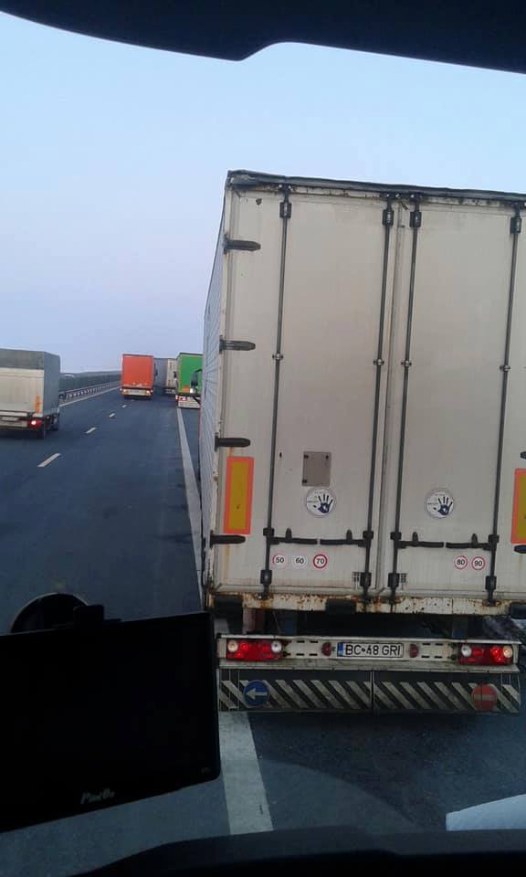 Cu nervii întinși la maximum, șoferii mașinilor de mare tonaj au început să claxoneze în sincron.