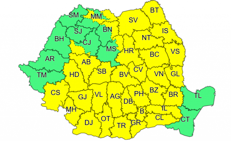 Meteorologii au emis o nouă avertizare de vreme rea valabilă în vestul țării. Atenţionarea de cod galben este valabilă în cea mai mare parte a judeţelor ţării, în vestul ţării fiind vizate Hunedoara şi Caraş-Severin.