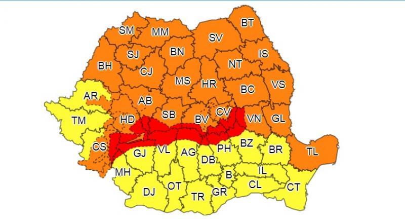 De altfel, întreaga țară este vizată începând de duminică după-amiază, de la ora 18:00, de o avertizare meteo cod portocaliu și galben pentru vânt. Codul portocaliu intră în vigoare de dumnică, de la ora 18:00 până luni la ora 18:00 și vizează tot zona montană, unde vântul va avea intensificări susținute, cu rafale de peste 110…130 km/h. Temporar va ninge viscolit, diminuând semnificativ vizibilitatea, la început în Carpații Orientali, apoi și în restul zonei montane, la altitudini în general de peste 1600 m.