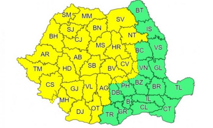 Acesta intră în vigoare în dimineața zilei de sâmbătă, 25 iulie, la ora 04:00, și va fi ridicat, duminică seara, la ora 23:00. ”În Banat, Oltenia, Crișana, Maramureș, Transilvania, nord-vestul Munteniei și al Moldovei, precum și la munte vor fi perioade cu instabilitate atmosferică accentuată ce se va manifesta prin averse torențiale, descărcări electrice, intensificări de scurtă durată ale vântului, vijelii și grindină. În intervale scurte de timp sau prin acumulare, se vor înregistra cantități de apă ce vor depăși 25…30 l/mp și pe arii restranse 40…60 l/mp”, transmite ANM.