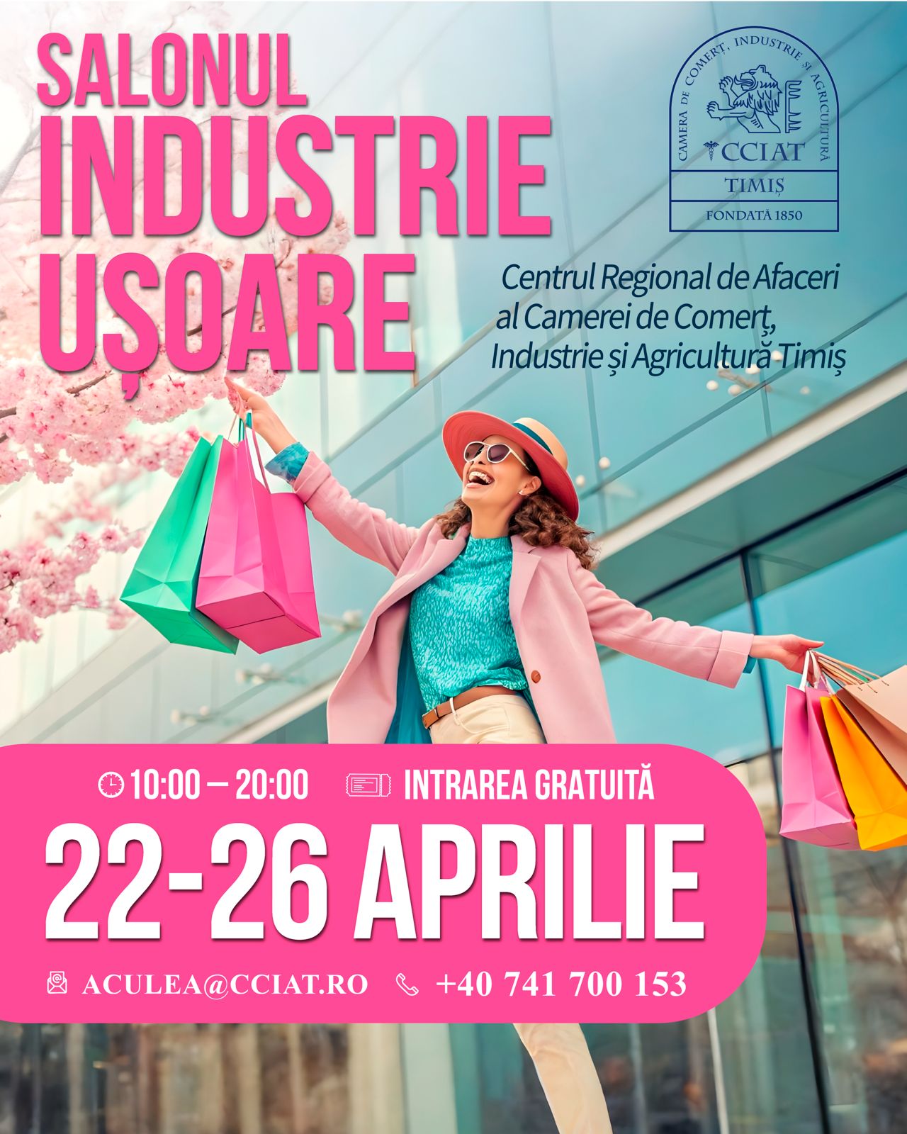 În perioada 22 – 26 aprilie 2026, SALONUL INDUSTRIEI UȘOARE revine în atenția publicului timișean cu cea de-a treia ediție de primăvară din acest an. Eveniment de tradiție, organizat de Camera de Comerț, Industrie și Agricultură Timiș de peste 30 de ani, Salonul rămâne un reper important în peisajul expozițional din vestul țării.